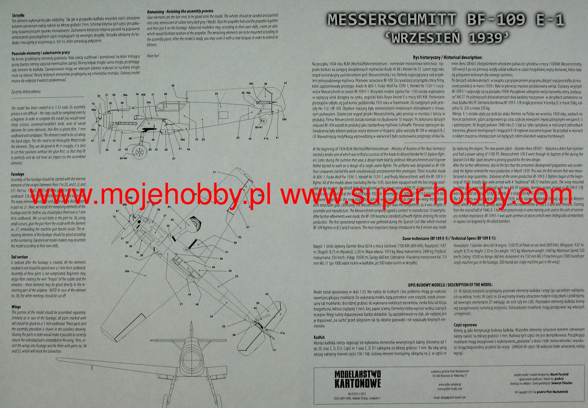 001 BF-109 E-1 WRZESIEŃ 39' modelarstwo kartonowe 1/33