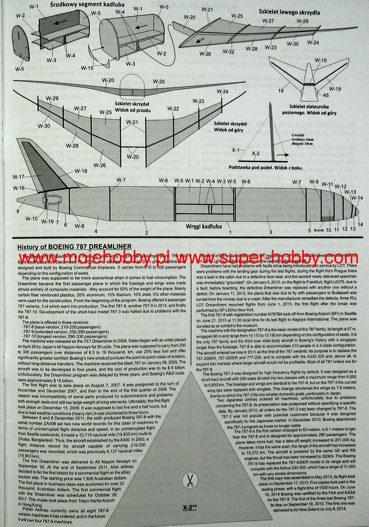 The Boeing 787 Dreamliner is a mid-range, low-wing, twin-engine, low-wing passenger jet in the USA. The drive is provided by two General Electric GEnx or Rolls-Royce Trent 1000 engines. The flight of the prototype took place in 2009, and serial production started in 2010 and is still going on. By April 2017, 532 copies of this aircraft had been produced. The unit price of the Boeing 787 varies from $ 224 million to $ 306 million, depending on the version. During the design of the Boeing 787, great emphasis was placed on low fuel consumption, which led to the use of new, highly fuel-efficient engines. It is also the first passenger plane in which the entire fuselage and wings are made of composites. In the entire structure, they constitute as much as 50% of the materials used! Similarly to the 777 model, a very modern avionics using the fly-by-wire system was also used. The Boeing 787 also managed to set a flight endurance and speed record in its class of machines. The machine is built in three basic versions: 787-8, 787-9 and 787-10, which differ in the length of the fuselage and the capacity of the passenger compartment. The 787-8 version of the aircraft has been in use by LOT Polish Airlines since 2012.