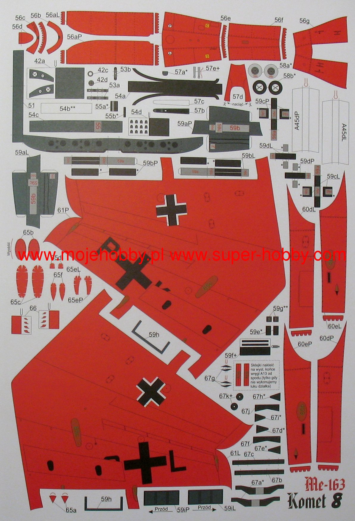 The Messerschmitt Me-163 Komet is a German rocket-powered fighter in a tailless mid-wing system with oblique wings and a mixed design. The flight of the prototype took place on February 13, 1941, but the entry into the line units took place only in 1944. The beginnings of the Me-163 date back to gliders and tailless airplanes constructed by prof. Lippisch, and especially DFS-194. It was this design that formed the basis of the Me-163A. The first flight of this machine with a rocket engine took place in 1941, and the engine was Walter HWK R.II. The following years are the time of trials and tests with a revolutionary design and the same drive. A new engine was also used - Walter HWK 109-509B-1. The first unit to fly the Me-163 was the 16th Experimental Unit, and shortly thereafter also the Group from the Jagdgeschwader 400. Their task was to develop tactics and undergo training on new machines. The first combat use took place in July 1944. Until the end of the war, these machines were used as fighters to intercept Allied bombers. In total, there were about 280 aircraft of this type in the line. The Me-163 was undoubtedly a revolutionary machine - the new propulsion and unusual shape made it a very characteristic aircraft with a considerable maximum speed, exceeding the performance of allied aircraft. However, it should be remembered that it was difficult to pilot, after landing it was completely defenseless and could operate rather from paved runways. In addition, the fuel mixture tended to self-ignite. One should also remember about the dramatically short range, which effectively limited its combat use. Technical data (version Me-163B): length: 5.98m, wingspan: 9.33m, height: 2.75m, maximum speed: 959km / h, rate of climb: 160m / s, maximum range: 100km, maximum ceiling 12,100m , armament: fixed - two 30mm MK108 cannons.