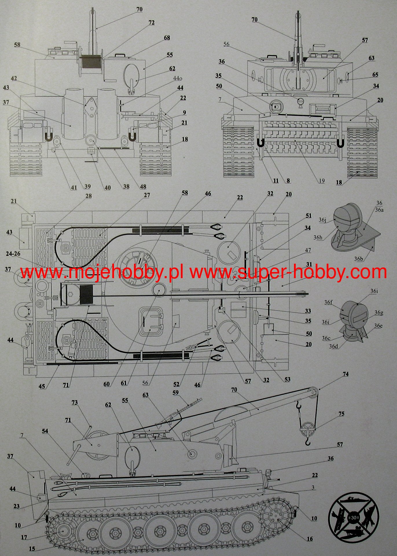 The Bergepanzer Tiger or Bergetiger (Sd.Kfz 185) was a German technical support and evacuation tank from the Second World War. The vehicle was powered by an engine Maybach HL230 P45 with 700 HP. It was armed with a single 7.92 mm MG34 machine gun. Vehicles The Bergepanzer Tiger was created as a result of the reconstruction of the tank turret and the removal of the main armament from it in favor of a crane with a load capacity of up to 10 tons. A tow winch was also installed on the tower. It is worth noting that it is difficult to talk about serial production of Bergetiger vehicles - they were almost certainly created as a result of reconstruction carried out in overhaul units of individual armored divisions. We are talking exactly about the 506th and 508th Heavy Tank Battalions. Most likely, only four Bergepanzer Tiger tanks were built in both battalions and served in Italy in 1944. From the winter of 1944, one of the vehicles of this type served - probably - in the 501st Heavy Tank Battalion. However, in studies on this subject, you can also find other data on the number of Bergetiger carts and the place of their construction.