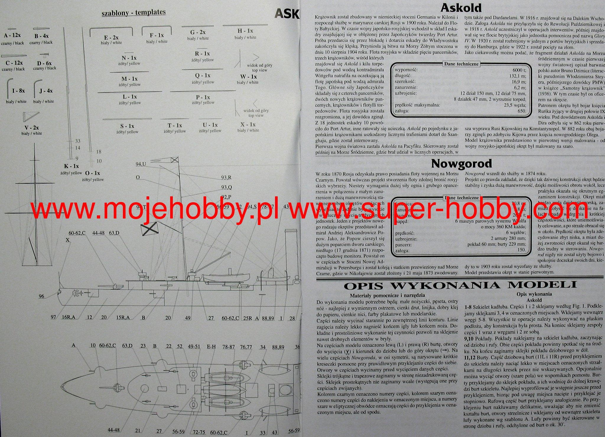 Askold was a Russian, later a Soviet, and finally a British armored cruiser, under which the keel was laid in 1899 at the Germania Shipyard in Kiel, launched in March 1900, and commissioned in the Russian Navy in 1902. The length of the ship was 132.5 m, width 15.6 m, and a displacement of about 6,200 tons. The maximum speed was 23-24 knots. The main armament was 12 152 mm guns, and the secondary armament consisted of, among others, 12 76 mm guns or six 381 mm torpedo tubes. Askold was one of three cruisers ordered by the tsarist government from foreign shipyards for service in the Far East. It turned out to be a very successful ship - it was characterized by a very high maximum speed for those times, well-placed weapons and relatively cheap. It also had a highly reliable drive. The downsides, however, include the poor living conditions of the crew and the average durability of the ship. At the beginning of 1903, Askold reached Port Arthur and became part of the Russian fleet stationed in the Far East. He took part in the Japanese-Russian war (19904-1905) and in the Battle of the Yellow Sea on August 10, 1904, but the conflict survived - on internment in Shanghai. At the outbreak of World War I, he was still active in the Far East, and later crossed the Indian Ocean to the Mediterranean Sea to support the Dardanelles operation in 1915. In 1916 in Toulon, the cruiser underwent a major overhaul, and at the end of that year, it was sent to the Russian North Ocean Flotilla. In 1917 he joined Murmansk. During the intervention of the Entente countries against the Bolsheviks, it was seized by the English. In 1922 it was returned to Bolshevik Russia, but due to its terrible technical condition, it was scrapped in the same year at the Hamburg shipyard.
