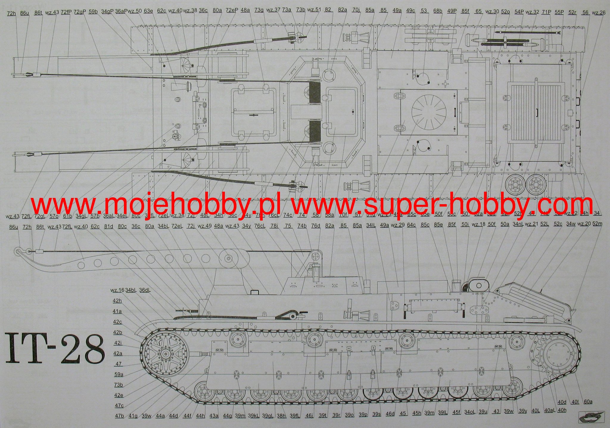 The IT-28 is a Soviet bridge and engineering tank from the interwar period and World War II. Cars of this type were developed in 1940. Serial production data is ambiguous and it may have been in 1940-1941. The drive was provided by a single, 12-cylinder M-17 engine 500 hp, which allowed the car to accelerate to 30 km / h on the road. The armament consisted of two 7.62 mm DT machineguns. The IT-28 vehicle was developed at the Kirov Works in the then Leningrad (now Saint Petersburg) as a development version of the T-28 tank. Compared to its prototype, it did not have a 76.2 mm gun turret, in which a superstructure (casemates) was built. The truck was also equipped with a specialized device for arranging bridges. Its armament was also reduced to two MGs. Interestingly, however, relatively thick armor, reaching even 50 mm, has been preserved. IT-28 was to provide technical and engineering support to Soviet armored and motorized units. It is worth noting that it is not known whether the car entered mass production and whether any of its copies actively participated in the fighting on the Eastern Front in 1941 or 1942.