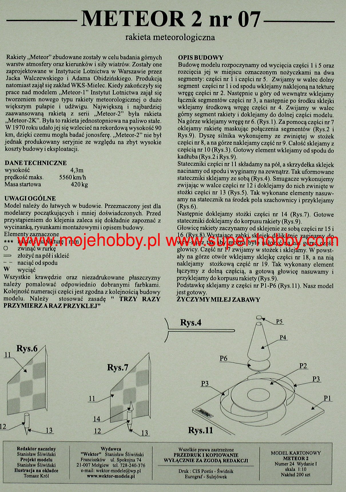 Метеор это собирательное название серии польских метеорологических ракет, программа которых выполнялась в 19651974 годах и особенно интенсивно в период 19651970 годов. Ракета Метеор-1 имела высоту 2,47 метра при взлетной массе 32,5 килограмма. Максимальная скорость составляла 1100 м/с. Основной задачей ракет Метеор было исследование верхних слоев атмосферы Земли и изучение направления и силы ветра на высоте примерно от 20 до 50 километров. За разработку ракет отвечали ученые из Варшавского авиационного института, а за производство Государственный авиационный завод в Мелеце. Стоит отметить, что одна из ракет серии (Метеор-2К) поднялась на рекордную для этой серии высоту в 90 километров! Подсчитано, что в общей сложности было проведено около 220 пусков ракет из этой серии, в результате чего было получено много ценной информации в области метеорологии, а также ракетной техники. Принято считать, что ракетная программа Метеор была одной из самых успешных метеорологических ракетных программ в Польше.