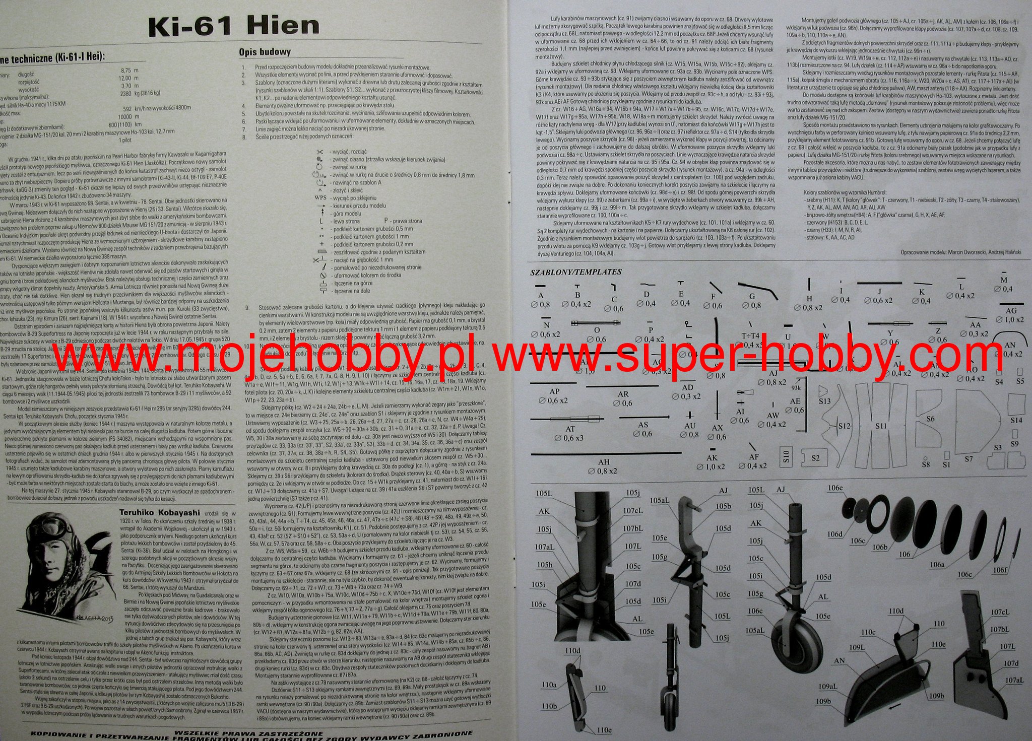 Kawasaki Ki-61 Hien (Japanese flying swallow) is a Japanese, single-engine, metal low wing fighter with a classic tail from the Second World War. The prototype's flight was nice in December 1941, and the first planes reached the line units in February 1943. The heart of the aircraft was the Kawasaki Ha-40 or Ha-140 engine, that is, a liquid-cooled German Daimler-Benz DB 601A built under license. The Ki-61 surprised the Allied forces during the fighting in New Guinea in June 1943, where it was taken as a copy of the German Messerschmitt Me-109, later suspected to be a copy of the Italian Macchi C202 or other Italian fighter. For this reason, he was given the nickname "Antonio" or "Tony". During the fights in 1943, Ki-61 fighters demonstrated their considerable advantage over American machines, such as the F-4 Wildcat. The Ki-61 later fought over the skies of New Britain and New Ireland, and in 1944 they were used in combat in the Philippines. Later they were used to defend the Japanese islands. Some of them have become kamikaze planes. The Ki-61 was undoubtedly a very good fighter, but its Achilles' heel was limited in series production due to problems with the engines. Technical data (version Ki-61-I): length: 8.94m, wingspan: 12m, height: 3.7m, maximum speed: 580km / h, rate of climb: 15.2m / s, maximum range: 580km, ceiling maximum 11,600m, armament: fixed - 2 12.7mm Ho-103 machine guns and 2 20mm Ho-5 cannons, suspended - up to 500 kg of bombs.