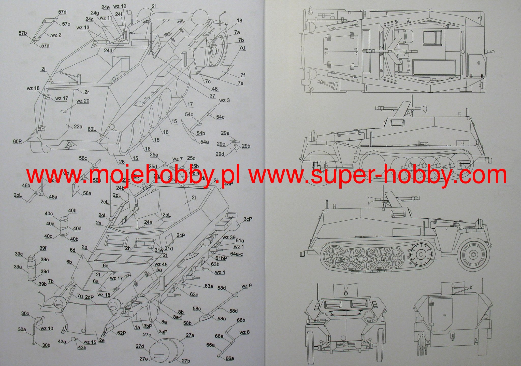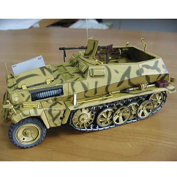 Sd.Kfz 250 was a German light, half-track armored transport from the Second World War. The first prototypes of the vehicle were created in 1939, and serial production continued in the period 1940-1944, ending with the production of about 6,700 units. The Sd.Kfz 250 was powered by a six-cylinder engine Maybach HL 42 TRKM with 100 hp . The Sd.Kfz 250 was developed as a light reconnaissance and multipurpose vehicle for the German armored divisions and panzer grenadiers. In the course of serial production, two versions of the Sd.Kfz 250 hull were created: the first (called "alt") had undercut side hull plates and a broken armor plate at the front of the hull. In 1943, the "neu" version was introduced, which was simplified: the hull sides were flat, as was the armor plate on the front of the car. During the Second World War, several variants and versions of the Sd.Kfz 250 were created. The first chronological version was the Sd.Kfz 250/1, which was the basic version and could function as a light infantry transporter or reconnaissance vehicle. Later, the Sd.Kfz 250/3 version appeared, which was a command version with a long-range loop antenna and a long-range radio. Later, a version armed with an 80 mm mortar (Sd.Kfz 250/7), a 28 mm anti-tank gun (Sd.Kfz 250/11) or a reconnaissance vehicle with a 20 mm cannon in a rotating turret (Sd. Kfz 250/9). Cars Sd.Kfz 250 of all versions were used primarily in armored divisions and armored grenadiers on virtually all fronts of World War II.