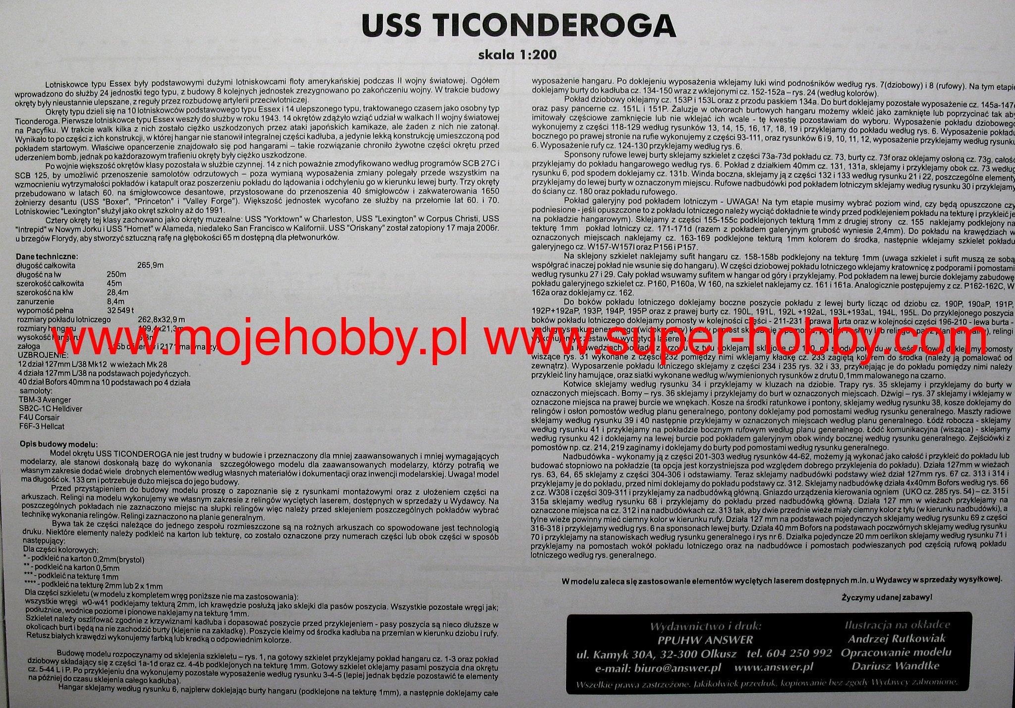 The USS Ticonderoga (CV-14) was an American aircraft carrier, the keel of which was laid in February 1943, launched in February 1944, and commissioned with the US Navy in May 1944. The length of the ship - at the time of launching - was 271 m, breadth at the waterline 28 m, and full displacement - 41,700 tons. The maximum speed of the USS Ticonderoga aircraft carrier was up to 33 knots, and its main armament comprised from 90 to 100 on-board planes. USS Ticonderoga was the twelfth aircraft carrier of the Essex class and the first of the Ticonderoga sub-type. Ships of this type were the main American aircraft carriers during the Pacific War of 1943-1945. The Ticonderoga sub-type differed from the other Essex-class ships mainly in terms of an elongated hull and even stronger anti-aircraft armament. The genus Essex and the subtype Ticonderoga included as many as 24 aircraft carriers that entered the line until the Japanese capitulation in September 1945! Their construction was based on the experience gained from the operation of Lexington and Yorktown units, as well as not having to comply with any tonnage restrictions. The emphasis was primarily on the number of planes taken and the maximum speed at the expense of the armor of the landing deck. Interestingly, the Essex-class aircraft carriers were built in such a way that the hangar was not an integral part of the fuselage, but a structure suspended under the flight deck. Such a solution made the ships of this type relatively easy to damage, but much more difficult to sink as a result of an air attack. The USS Ticonderoga (CV-14) aircraft carrier during World War II took part in the operations in the Philippines, and mainly supported land operations in November-December 1944. In January 1945, the carrier operated in the South China Sea region, operating primarily against Japanese shipping and aviation in the Taiwan region. Later, his planes participated in air raids of on-board aviation against the Japanese fleet stationed in their native waters. On February 21, 1945, it was severely damaged by a kamikaze attack. After repairs, the ship returned to active service at the turn of April and May 1945, continuing air raids against Japanese ships stationed in ports in Japan. She was one of the ships participating in the signing ceremony of Japan's unconditional surrender on September 2, 1945 in the waters of Tokyo Bay. After the end of World War II, the USS Ticonderoga (CV-14) was placed in reserve, but returned to active service in 1952 due to the outbreak of the Korean War (1950-1953). He took a limited part in the fights on the Korean. The ship was also modernized and adapted to operate on-board jet airplanes. USS Ticonderoga took a very active part in the Vietnam War (1964 / 1965-1975). The unit was withdrawn from the line in 1973 and finally sold for scrap in 1974.