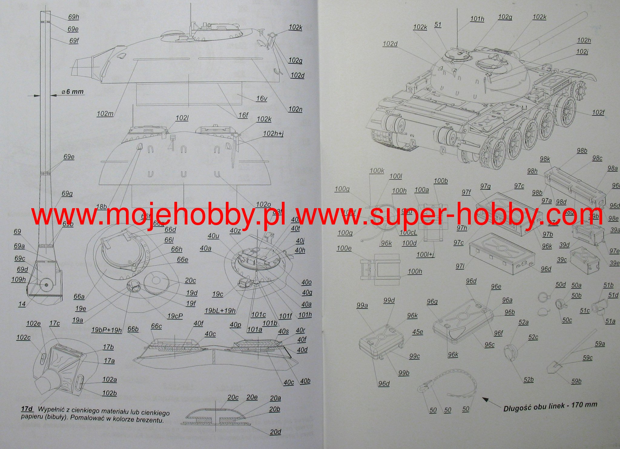 The T-54 is a Soviet Main Battle Tank from the Cold War period. The first prototypes of this vehicle were built in 1945-1946, and serial production in the USSR started in 1946 and lasted until 1958. In its course, about 35,000 vehicles of this type were created - only in the Soviet Union! The combat weight of the tank was up to 36 tons. The drive was provided by a single 520 HP W-54 engine. The main armament was the 100 mm D-10T wz.1944 tank gun, and the additional armament was two 7.62 mm SGMT machine guns and a 12.7 mm DSzK machine gun. Work on the T-54 actually started during the Second World War and dates back to the T-44 tank. When developing the T-54, the aim was, on the one hand, to maintain all the advantages of the T-34/85 (especially its good maneuverability), but also to use clearly stronger main armament and more effective armor. Finally, a vehicle was created that is probably the first to be called the Main Battle Tank (MBT). Without a doubt, it was a successful tank when it entered service. Several versions of this vehicle were created in the course of mass production, including the T-54 mod. 1946 (version with a turret similar in shape to the T-44), T-54 mod. 1949 (version with a changed shape of the turret) or the T-54A (version with a gun stabilizer on one level and night vision devices for the mechanic-driver). It is worth adding that the T-54 was licensed in, among others, Czechoslovakia and Poland.