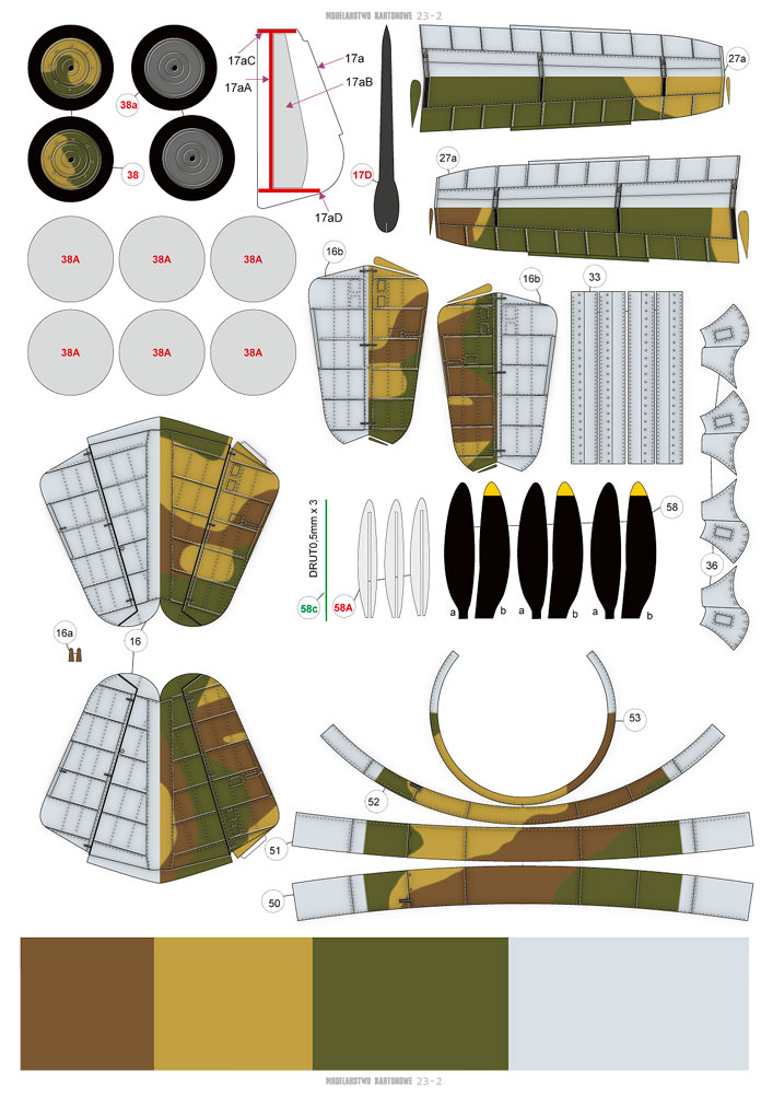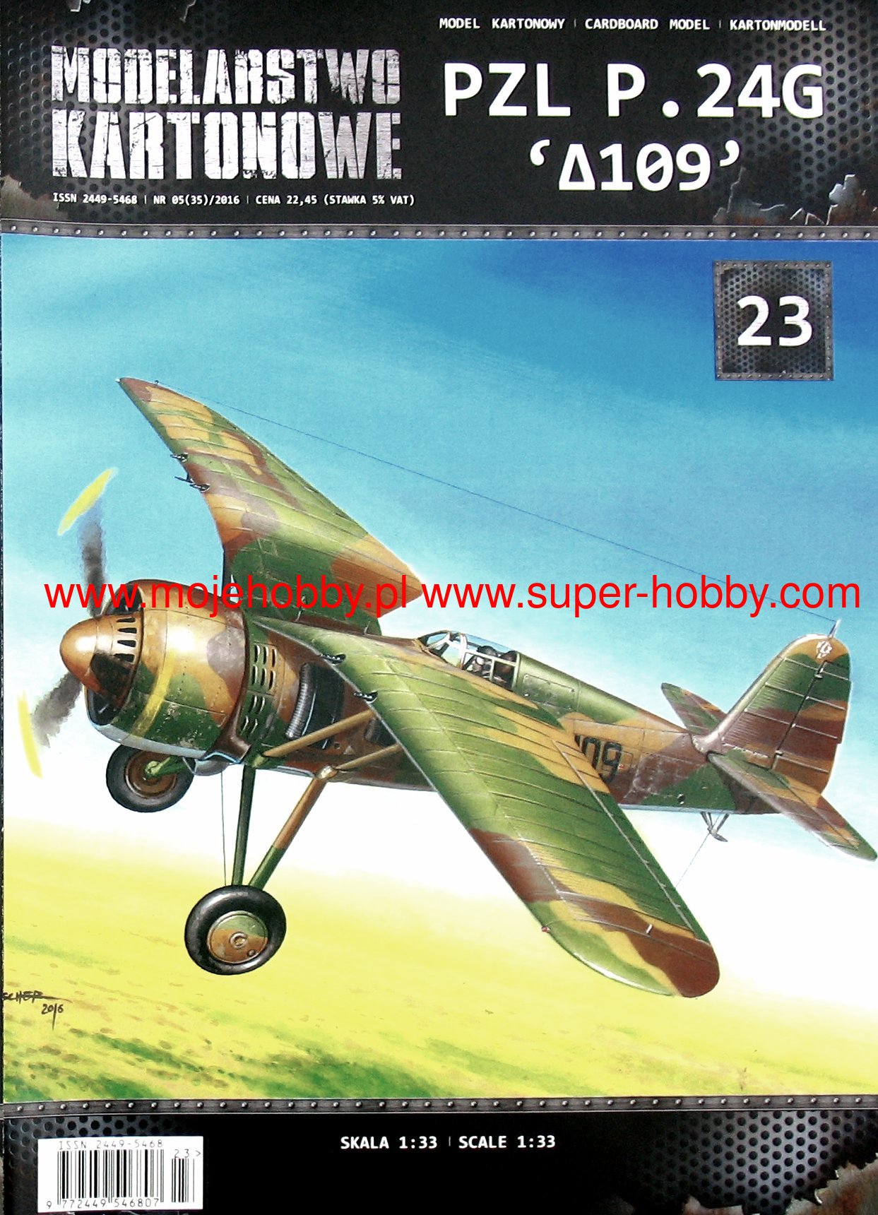 023 PZL P.24 G '109' modelarstwo kartonowe 1/33