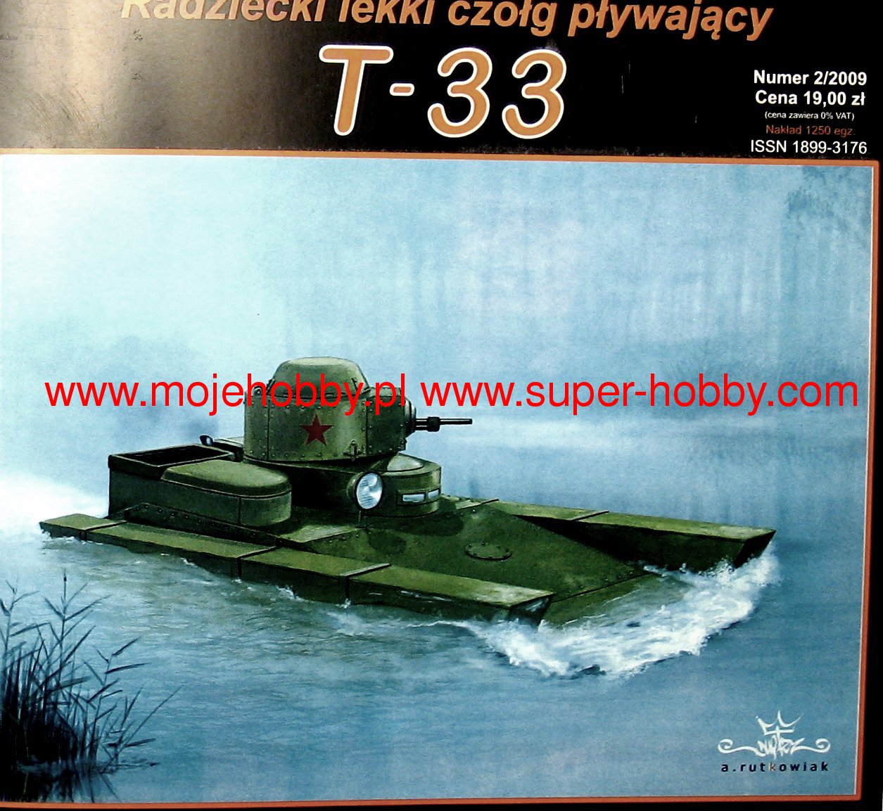 The T-33 is a Soviet prototype floating tank from the interwar period. Prototypes of this car were made in 1931. The car, however, never entered mass production. The drive was provided by a single engine with a maximum power of 97 HP. The total length of the wagon was 3.8 meters with a width of 2.1 meters. The tank was armed with a single 7.62mm DT machine gun. The Soviet T-33 tank was developed under a very strong influence of similar structures being built in Great Britain, and more precisely - at the Vickers Carden-Lloyd plant. It was assumed that the new tank would be quite buoyant and would be able to overcome water obstacles such as rivers or lakes without any preparation. For this reason, the tank had two floats made of wood and cork, and a single propeller at the rear of the car. After undergoing tests in 1932, the car performed well in water, but it showed many mechanical imperfections. For this reason, its production was abandoned, and on the basis of this tank, work began on the T-37 and T-41 vehicles.