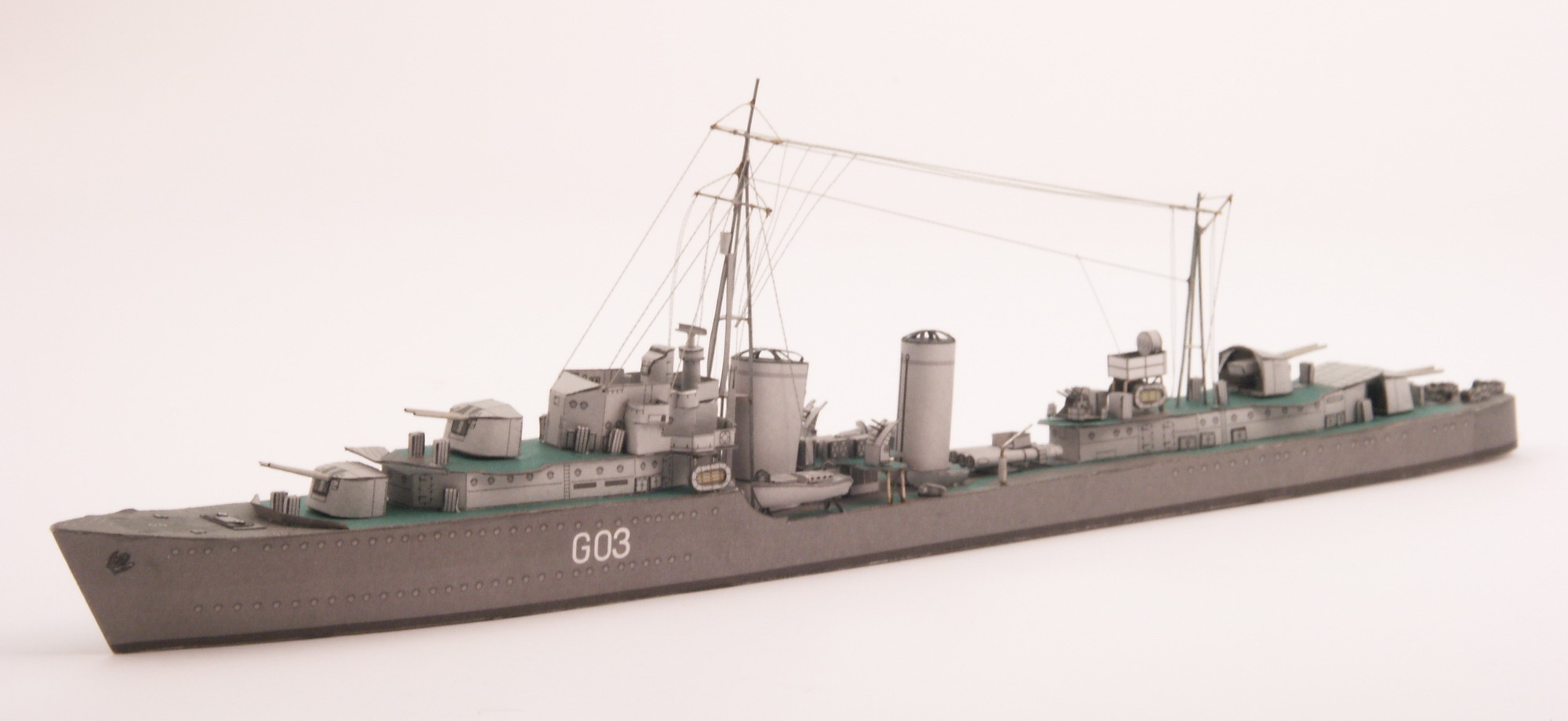 HMS Cossack (F03) was a British destroyer from the interwar period and World War II. The keel for this unit was laid in 1936, and the launch took place in June 1937. The total length of the ship at the time of launching was 115 meters and a width of 11.13 meters. Full displacement reached approx. 2,500 tons, and the maximum speed was approx. 36 knots. The armament at the time of launching consisted of, among other things, four twin 120 mm guns, a 40 mm gun and a quadruple 533 mm torpedo tube. HMS Cossack was one of the Tribal-class destroyers (another name: Afridi-class). These types of ships were initially designed as light cruisers and only later developed as destroyers. Units of this type were characterized by a relatively high displacement, they also emphasized strong artillery at the expense of - for example - limited torpedo armament. They were also characterized by good maximum speed and high seaworthiness. Later they also received ASDICs, which significantly increased their anti-submarine anti-submarine (ZOP) capabilities. They are quite commonly considered successful units with high combat value. HMS Cossack during World War II took part in the so-called the Altmark incident in the waters of Norway, and later - in April 1940 - fought in the Narvik area. In May, HMS Cossack participated in the tracking down and sinking of the battleship Bismarck. The destroyer was sunk by the German submarine U-563 on October 23, 1941 during the cover of the convoy sailing from Gibraltar to Great Britain.HMS Lance (G87) was a British WWII destroyer. The keel for this unit was laid in 1939, and the launch took place in November 1940. The total length of the ship at the time of launching was 110.5 meters and a width of 11.2 meters. The displacement reached approx. 1,900 tons, and the maximum speed was approx. 36 knots. The armament at the time of the launch consisted of eight 102 mm guns in four twin turrets, one 40 mm gun and eight 533 mm torpedo tubes. HMS Lance was one of the eight L-class destroyers (often referred to as the L / M-class). However, along with two other destroyers, it was a peculiar subtype within that class. HMS Lance was relatively heavily armed with anti-aircraft artillery, and at the same time had relatively strong artillery armament. It had - in relation to other L-class destroyers - a changed shape of the fore superstructure and a part of the aft superstructure. HMS Lance had a short but turbulent combat trail. In May 1941, the ship participated in the tracking down and sinking of the battleship Bismarck. Later, he covered convoys on the route Great Britain - Gibraltar, and in October 1941 he was transferred to Malta and joined the so-called Force K, where he successfully takes part in numerous actions against the Italian Regia Marina. In January 1942, he sheltered one of the British convoys sailing in the Mediterranean Sea. The unit was seriously damaged as a result of Italian air raids on Malta in April 1942. The unit was later towed to Great Britain, but after learning about the damage on the ship, it was decided to dismantle it and from 1944 the ship was gradually scrapped.