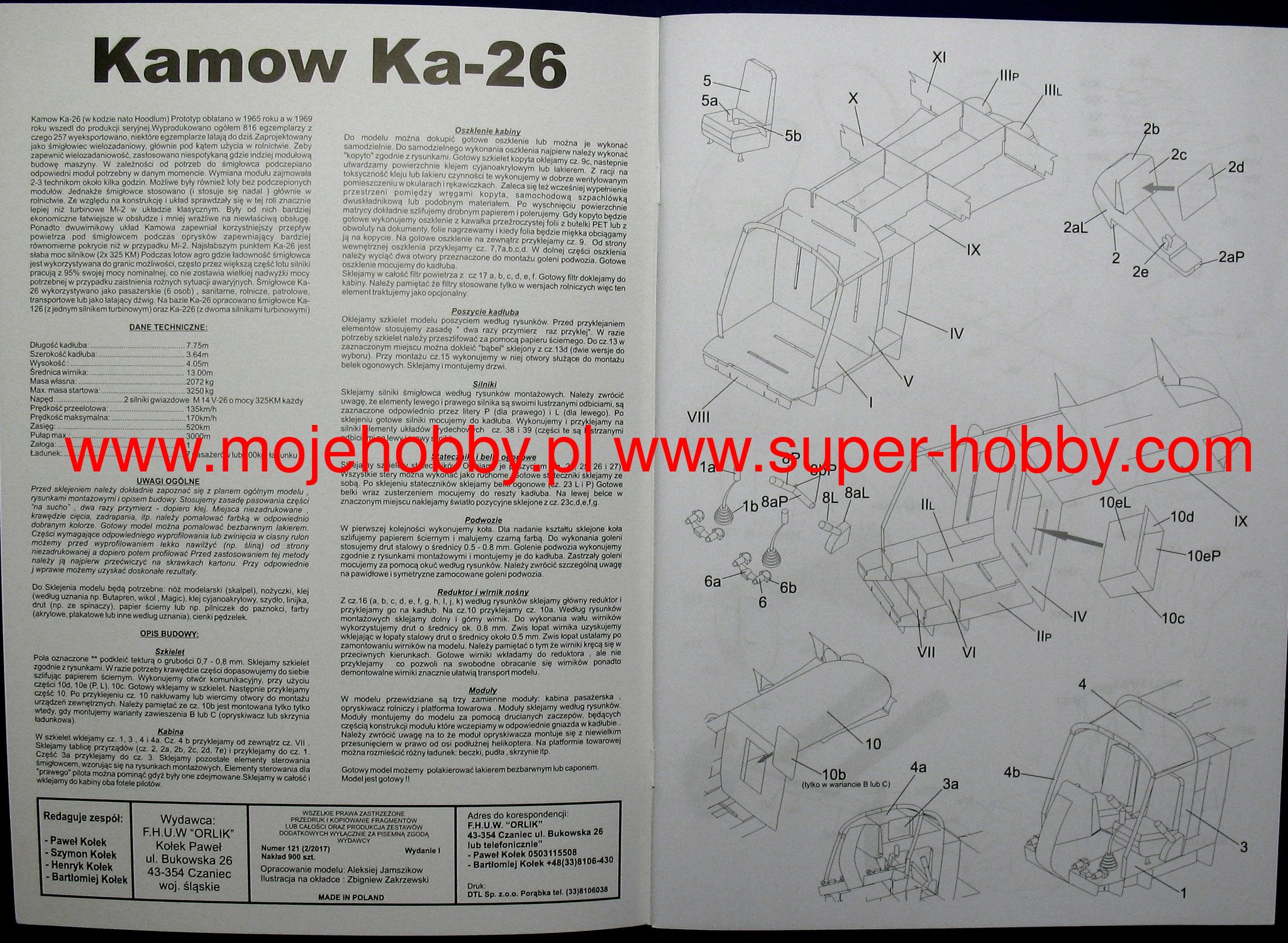 The Kamow Ka-26 (NATO code: Hoodlum) was a Soviet light, two-seat, multi-role, light all-metal helicopter with a fixed, three-support undercarriage in a rare coaxial twin-rotor arrangement. The drive was provided by two M-14-V-26 radial motors, 325 HP each. The flight of the first prototype took place in August 1965, and serial production continued in the period 1969-1985, ending with the production of about 800-900 copies. Ka-26 was created primarily for civilian purposes, with particular emphasis on agricultural purposes (large-area spraying), and the basic version, designated Ka-26A, was dedicated to this purpose. The only, more widely produced development version was the Ka-26B, which was powered by a single 720 HP engine. The first prototype took to the air in 1986. Interestingly, this version was developed in Romania, ending up with the creation of 2 prototypes and 15 serial copies. The successful and not very emergency Ka-26 was exported to several countries, including Bulgaria, Mongolia, Hungary and Sri-Lanka.