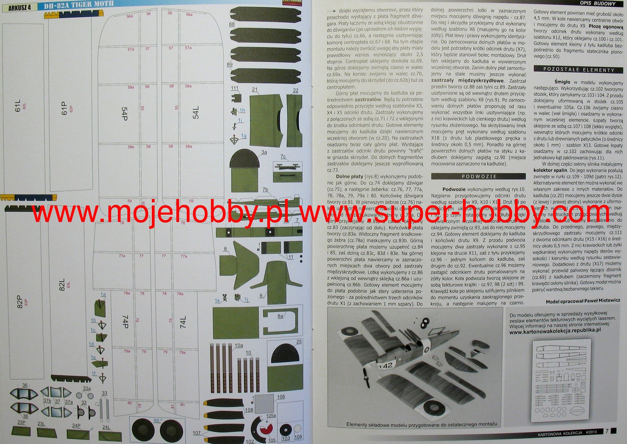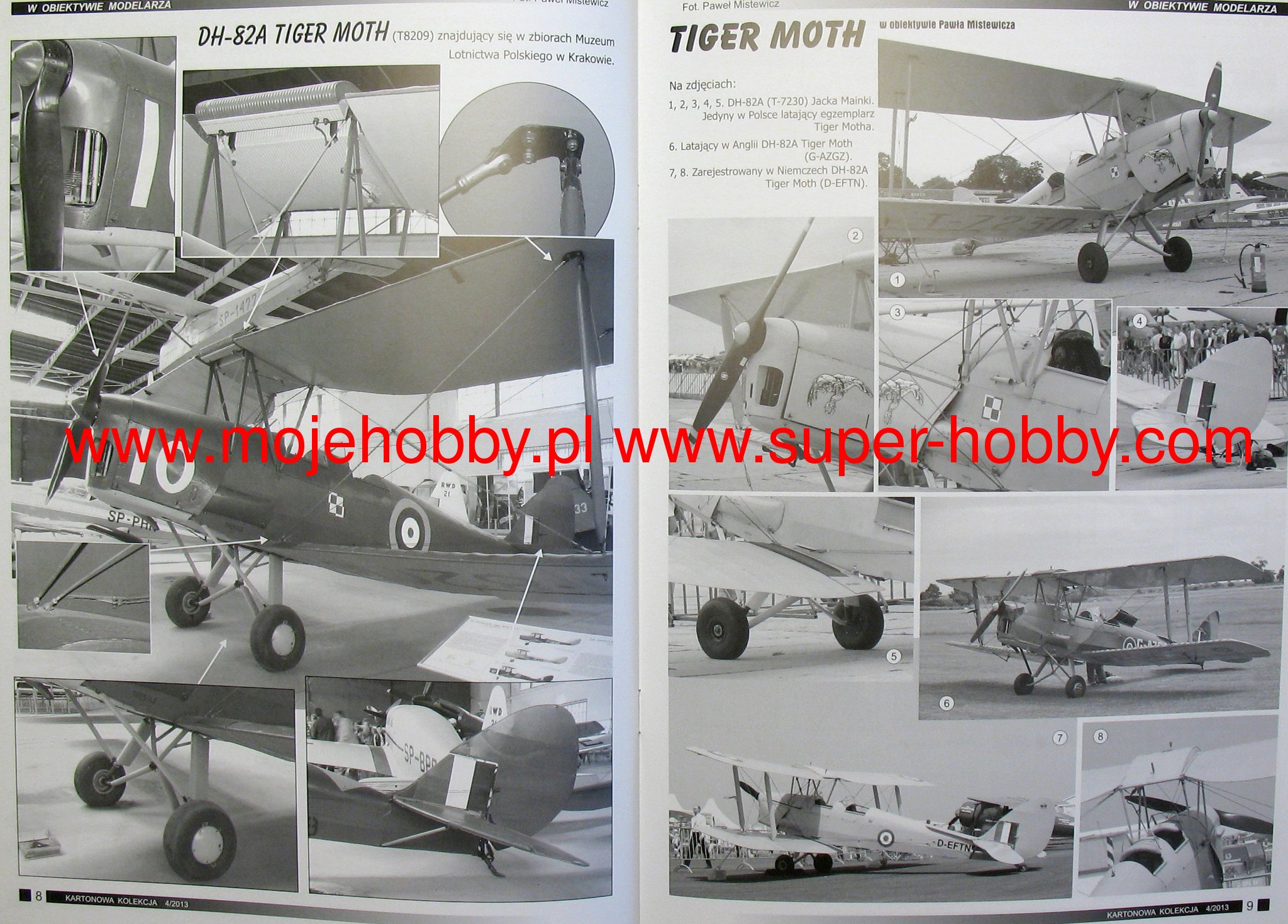 De Havilland Tiger Moth to brytyjski, dwupłatowy samolot szkolny o konstrukcji mieszanej z podwoziem stałym. Oblot prototypu miał miejsce w 1931 roku. Pierwszš wersjš produkcyjnš, napędzanš silnikiem de Havilland Gipsy III o mocy 120 KM był model Mk.I. Niedługo póniej jednak silnik zmieniono na de Havilland Gipsy Major o mocy 130 KM i tak powstała wersja Mk.II. Produkcja seryjna rozpoczęta w 1933 r. trwała do 1944 roku. Tiger Moth był jednym z podstawowych samolotów treningowych RAF w czasie II wojny wiatowej. Dane techniczne (wersja Mk.II): długoć: 7,34m, rozpiętoć skrzydeł: 8,94m, wysokoć: 2,68m, prędkoć maksymalna: 175km/h, prędkoć wznoszenia: 3,42m/s, pułap praktyczny: 4100m, zasięg maksymalny: 485km.