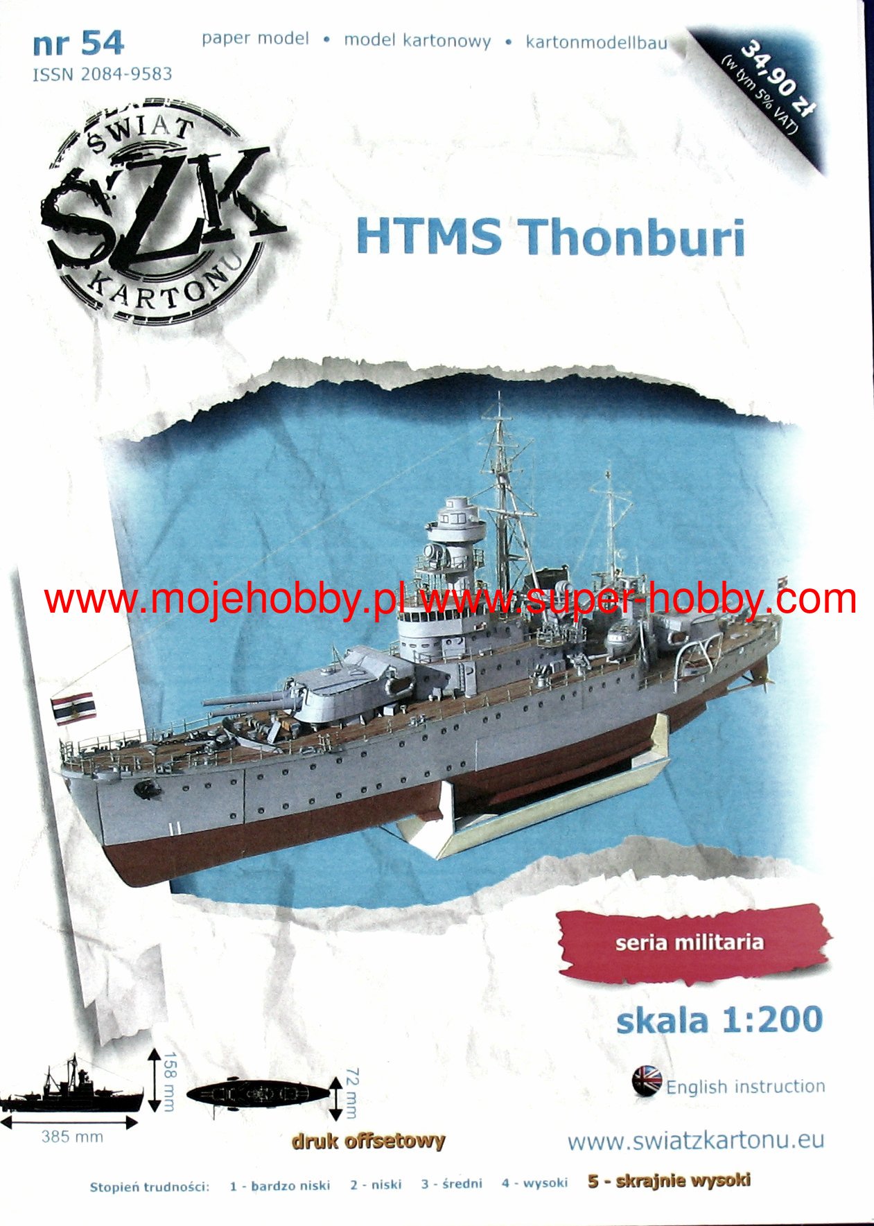 HTMS Thonburi was a Siamese coastal defense ship, sometimes classified as a coastal defense battleship, from the interwar period and World War II The keel for this unit was laid in 1936, the launch took place in July 1937, and the entry into service took place in January 1938. The total length of the ship at the time of launching was 77 m, with a width of 14.4 m and a draft of about 4.2 meters. The displacement was about 2,270 tons and the maximum speed was about 15.5 knots. The armament at the time of the launch consisted of, among other things, four 203 mm guns, four 76 mm universal guns and 4 20 mm anti-aircraft guns. HTMS Thonburi, along with its sister unit HTMS Sri Ayudhya, were commissioned by the Siam Navy and were built by the Japanese Kawasaki plants. During the design and construction of both these units, the experience gained from the operation of the Ratanakosindra class units was clearly based. First of all, the new ships, compared to their predecessors, have a much stronger main armament (203 mm guns instead of 152 mm), and the units themselves have been significantly enlarged and better armored. Incidentally, it can be added that the main artillery HTMS Thonburi and The HTMS Sri Ayudhya was the same as the Japanese heavy cruisers (e.g. the Mogami class). Both units were rated highly useful in the Siamese fleet. However, the combat trail HTMS Thonburi was relatively short, as he had to fight one more serious naval battle during World War II - the Battle of Koh Chang in January 1941 - which, moreover, ended in a disgraceful defeat for the Siamese side.