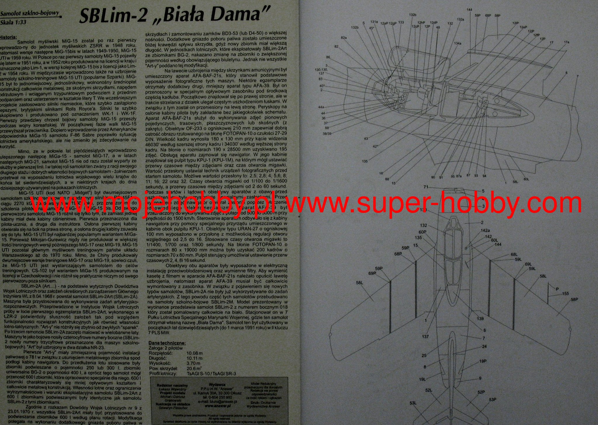 The Mikojan-Guriewicz MIG-15 is a Soviet, single-engine, wide-slant, full-metal jet fighter known by the NATO term Fagot or Midget. The flight of the prototype took place in December 1947, and the entry into the line in 1949. In total, in the USSR and under license (including Poland, as the Lim-1 and Lim-2), over 18,000 machines of all varieties and versions of the MIG-15 were created. lack of a proper engine. Only after copying the British Rolls-Royce Nene Mk.I and using it in the new airframe, it was possible to fly the future MIG 15. The basic versions are the MIG-15P (all-weather fighter), MIG-15UTI (training machine , two-seater), MIG-15SB (fighter-bomber) and MIG-15bis (fighter with the new WK-1 engine). The MIG-15 became a legendary aircraft during the Korean War (1950-1953), where it outclassed Western fighter machines until the arrival of the F-86 Saber. MIG-15 also took part in min. the Middle East conflicts (1966-1967) or the Suez crisis (1956). Technical data (MIG-15bis version): length: 10.1m, wingspan: 10.1m, height: 3.7m, maximum speed: 1075km / h, rate of climb: 50m / s, maximum range: 1310km, maximum ceiling 15500m armament: fixed - 2 NR-23 cannons, caliber 23 mm and 1 Nudelman N-37 cannon, caliber 37 mm, suspended - 200 kg of cargo.