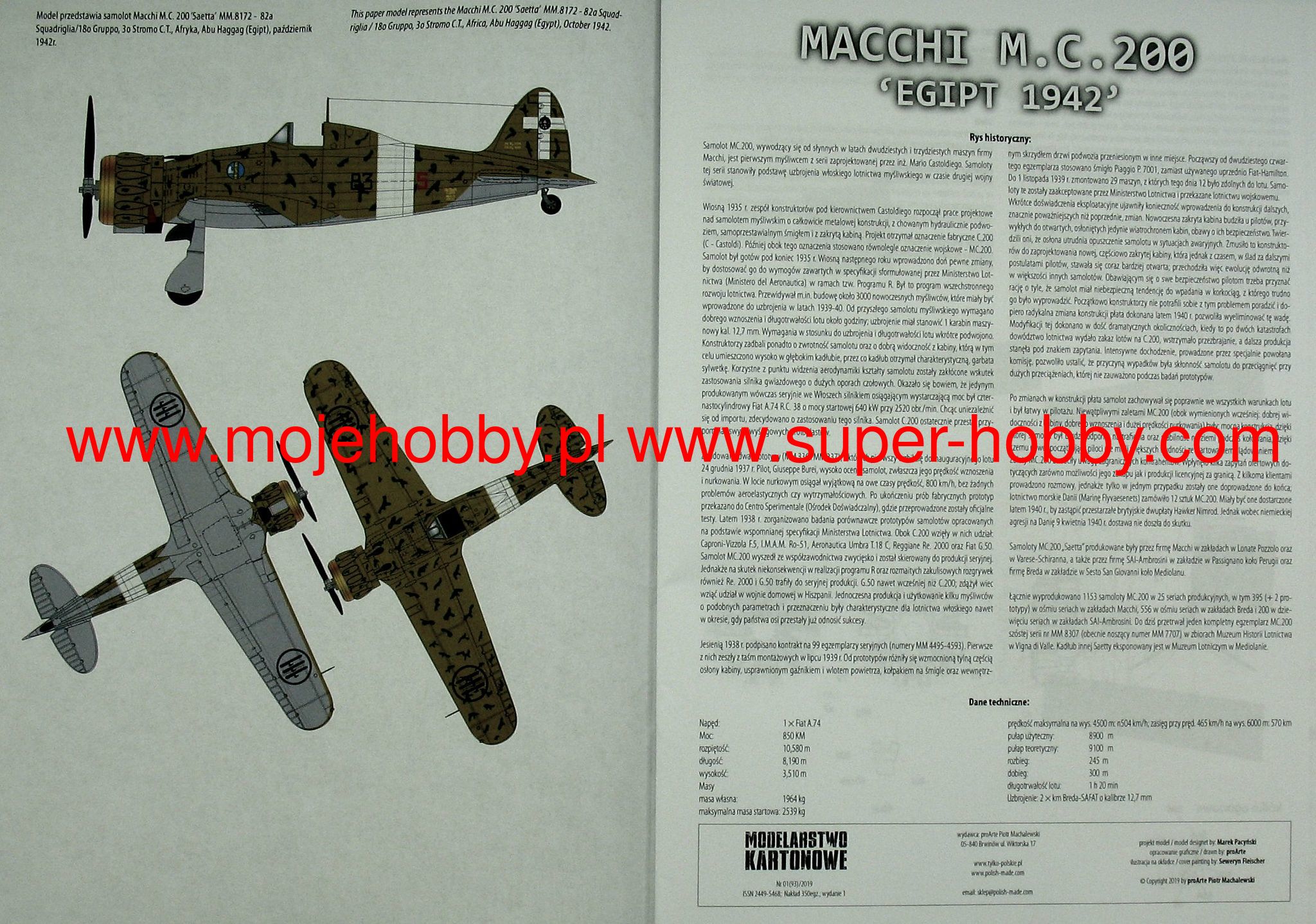 044 MACCHI MC.200 EGIPT 1942 modelarstwo kartonowe 1/33