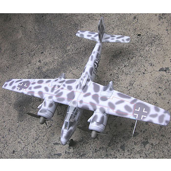 The Focke Wulf Ta-154 is a German twin-engine fighter and night fighter with a fully mixed high-wing design from the end of World War II. The flight of the prototype took place in the summer of 1943, and the plane entered production a year later. Depending on the version, it was powered by two Jumo 211F engines (1340HP each) or two Jumo 211N engines with 1500HP each. The Ta-154 was to be the answer for the British de Havilland Mosquito. Unfortunately, due to numerous shortcomings of the structure and the lack of major air successes, it was eventually considered a failed design. During the war, three main mass-produced versions of this aircraft were created. The Ta-154A was produced as a day fighter with numerous upgrades, only the A-4 was a night fighter. The situation with the Ta-154B was similar. The Ta-154C-1 sub-version (only the serial one produced from this version) was a night fighter with the new Jumo 211N engines. It has been extended by about 76 cm. Technical data (version Ta-154A-1): length: 12.55m, wingspan: 16.3m, height: 3.6m, maximum speed: 615km / h, rate of climb: 15m / s, maximum range: 1400km, ceiling maximum 9500m, armament: fixed-4 cannons MG151 and MK108 30mm.