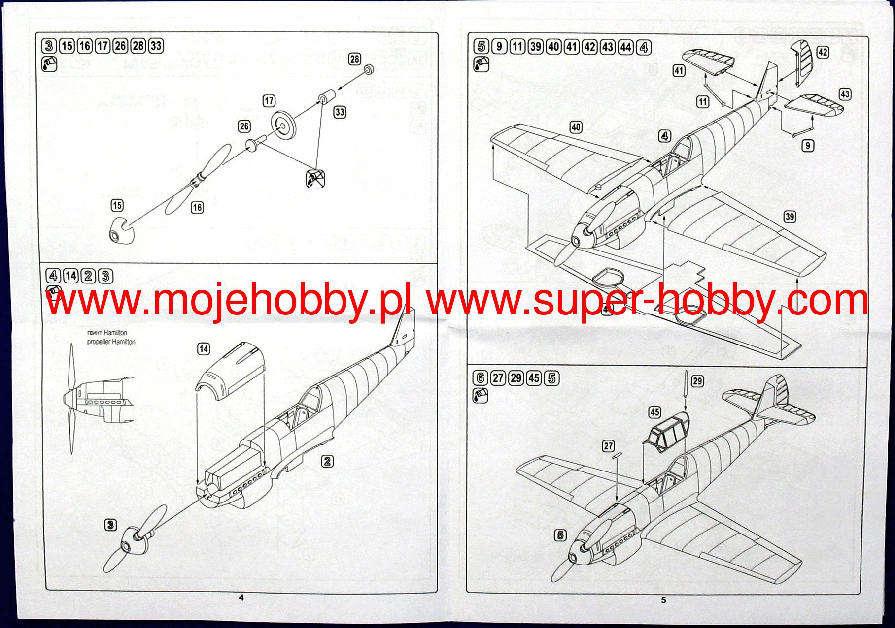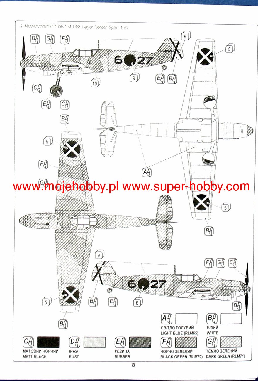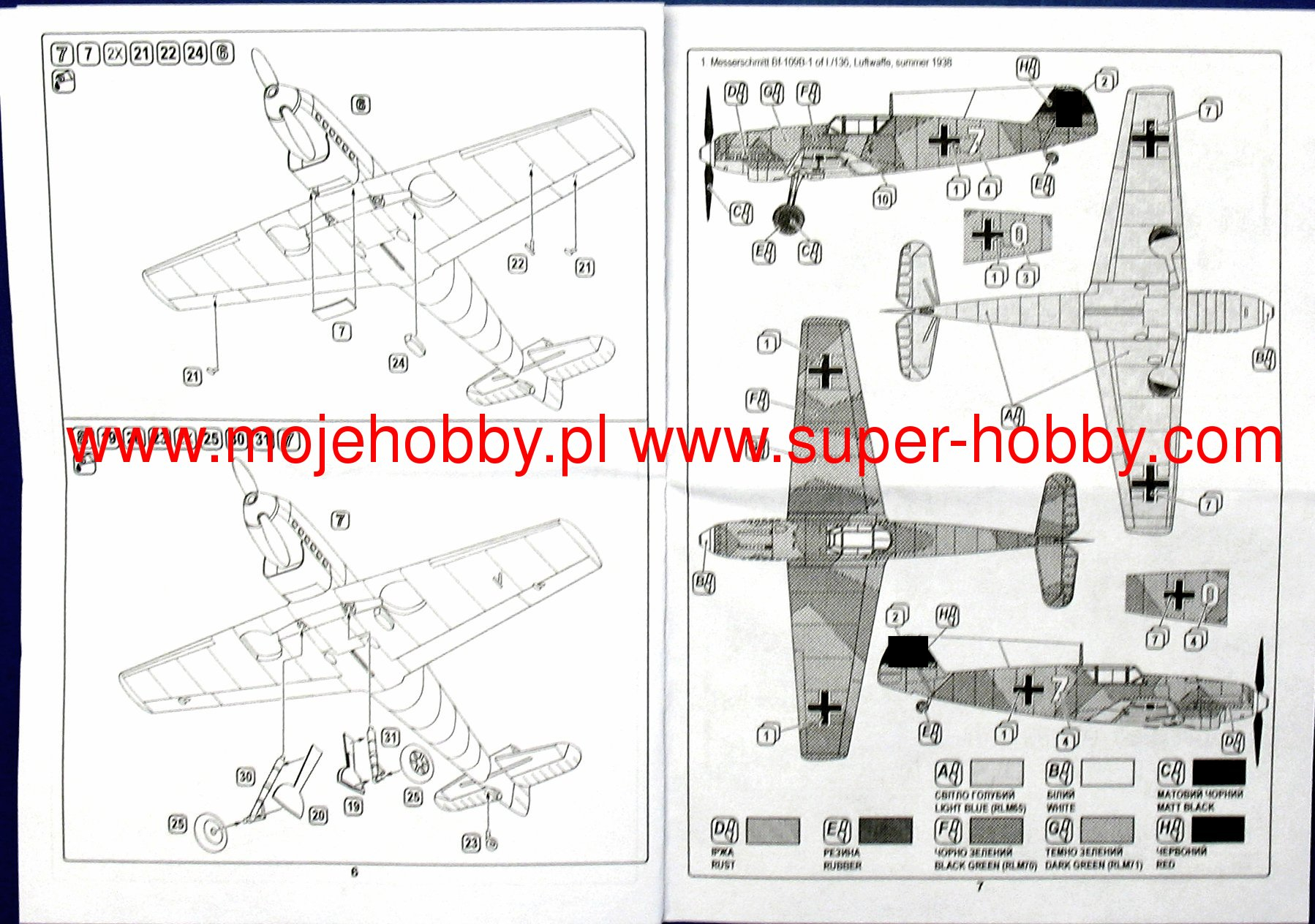 The Messerschmitt Bf-109 is a German metal-structure single-engine fighter in a low wing configuration with a classic tail. It turned out to be the basic and most produced Luftwaffe fighter during World War II. The flight of the prototype took place on May 29, 1935, and serial production continued in the years 1936-1945. In total, it is estimated that a total of about 35,000 Messerschmitt Bf-109 fighters of all varieties were produced, many of which ended up in the Czech and Israeli air forces after the war. The roots of the Bf-109 go back to the competition announced in 1933 by the Luftwaffe for a new fighter plane. In competition with the He-112, the Bf-109 project initially lost, but thanks to Willie Messerschmitt's intrigues, the project could continue and eventually he was the winner of the competition, becoming the Luftwaffe's primary fighter. Several main variants of the Bf-109 were developed in the course of production. The first pre-production series was the Bf-109B (Berta) with different versions of the Junkers Jumo 210 (A or Da) engine. They were tested in Spain from 1937 during the Civil War. The next version is the Bf-109C (Caesar). They had a different engine than the B version, and extensive armament consisting of two 20mm and 2 HP 7.92mm cannons. These machines also fought in the skies of Spain. The third version is the Bf-109D (Dora) with the Junkers Jumo 210 Da or Daimler-Benz DB 600 engine. It fought in the September campaign, but at the turn of 1939/1940 it was replaced by the E version. The most famous model was the Bf-109E (Emil) with a Daimler-Benz 601A or N engine. It was the first to use a three-blade, not a two-blade propeller. Bf-109E fought in the French campaign, over England, and in North Africa and on the Eastern Front. The ace who started his career on the Bf-109E was the famous Adolf Galland. The next version is the Bf-109F (Friedrich), which, according to the German pilots, was the most aerodynamically perfect. It sowed the changed shape of the fuselage, wings, cabin fairings, but no new engine was used. It was put into service at the turn of 1940/1941. As part of the development of the design, further Bf-109 specifications were developed, of which the G (Gustav) version was produced in the largest number of copies. The most important change increasing the machine's performance was the installation of a new 12-cylinder Daimler-Benz DB605A engine with 1475HP. The armament of the Bf-109G was a pair of 13mm machine guns located in the fuselage in front of the cockpit fairing, and the MG151 20mm or heavier MK108 30mm cannon. The last mass-produced version was the Bf-109K (Kurfirst), which production started in October 1944. A Daimler-Benz DB 605DB or DC unit was used as the engine. The Bf-109K was the fastest version produced during World War II, reaching up to 730 km / h. Apart from that, two versions were created - H and Z, but they were rather experimental versions and their mass production did not start. Subsequent improvements in propulsion and armament made the Messerschmitt Bf-109 one of the most dangerous fighters of World War II, and at the same time showed the great potential of the slightly angular airframe created by Willi Messerschmitt. Technical data (version Bf-109 G-6): length: 8.95 m, wingspan: 9.92 m, height: 2.6 m, maximum speed: 640 km / h, rate of climb: 17 m / s, maximum range: 850 km, maximum ceiling 12000m, armament: fixed - 2 MG131 13mm machine guns and 1 MG151 20mm cannon, suspended - 250 kg bombs, or 2 Wfr missile launchers. Gr. 21.