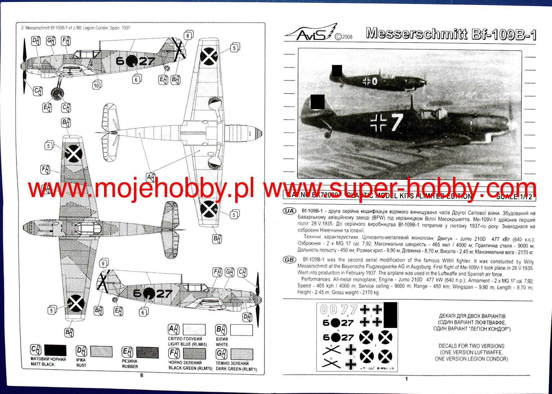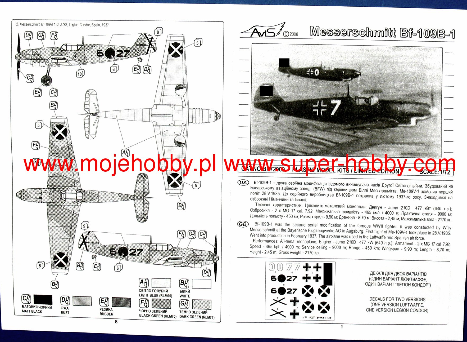 MESSERSCHMITT BF-109 B-1 avis 1/72