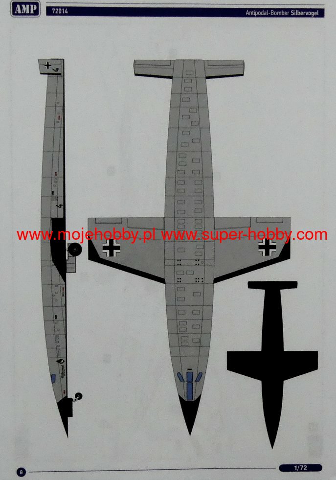 Silbervogel (Polish silver bird) is a never realized project of a German strategic bomber from the interwar period and World War II. It is assumed that the plane would be approximately 28 meters long with a wingspan of 15 meters. The maximum speed was - according to project - exceed 15 Ma, and maybe even 20 Ma! The machine would be capable of carrying a bomb load of 3000-3500 kg. The design of the Silbervogel aircraft was developed by Eugen Sänger, in collaboration with Irene Bredt. The machine was in fact a sub-orbital plane, which in the first phase of the flight was to be launched from a launcher with a length of about 3000 meters, and after rising to an altitude of about 1500-2000 meters, it was to start its rocket engine and enter the border between the Earth's atmosphere, and outer space. Then, it was supposed to descend into the atmosphere and drop a bomb load at high altitude on the territory of the USA. Ultimately, the machine was to land on the territory of allied Japan. It was assumed that the Silbervogel would have relatively small wings and an almost completely flat lower fuselage. The project was considered in 1942 as a potential candidate for the so-called Amerika Bomber, but it was not finally implemented. As a curiosity, it can be noted that after World War II, a project similar to the Silbervogel assumptions was implemented in the USA under the name X-20 Dyna-Soar.
