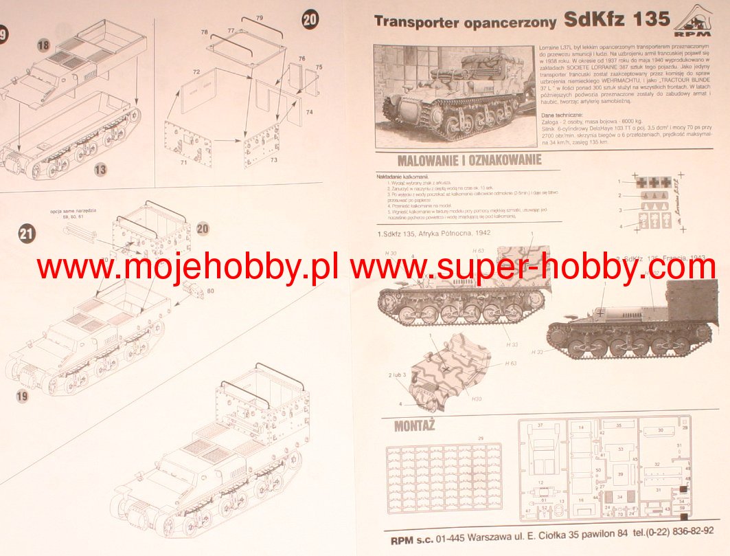 Sd.Kfz. 135 немецкий бронетранспортер времен Второй мировой войны. Автомобиль имел длину 4,2 метра и ширину 1,57 метра. Привод обеспечивался одним двигателем Delahaye тип 135 мощностью 70 л.с. Максимальная скорость машины достигала 35 км/ч, а запас хода машины составлял примерно 130-140 километров. Sd.Kfz. По сути, 135-й представлял собой адаптированный для Германии Lorraine 37L, который, в свою очередь, производился для французской армии в 19371940 годах. Машина обладала хорошими внедорожными свойствами, а главное была очень низкой, что позволяло легко ее маскировать. По этим причинам он использовался после 1940 года немецкой армией в качестве артиллерийского тягача, а также в качестве бронетранспортера. Он очень подходил в качестве машины снабжения и транспорта в немецких быстроходных частях. Стоит отметить, что истребитель танков Marder I также разрабатывался на базе Lorraine L37.