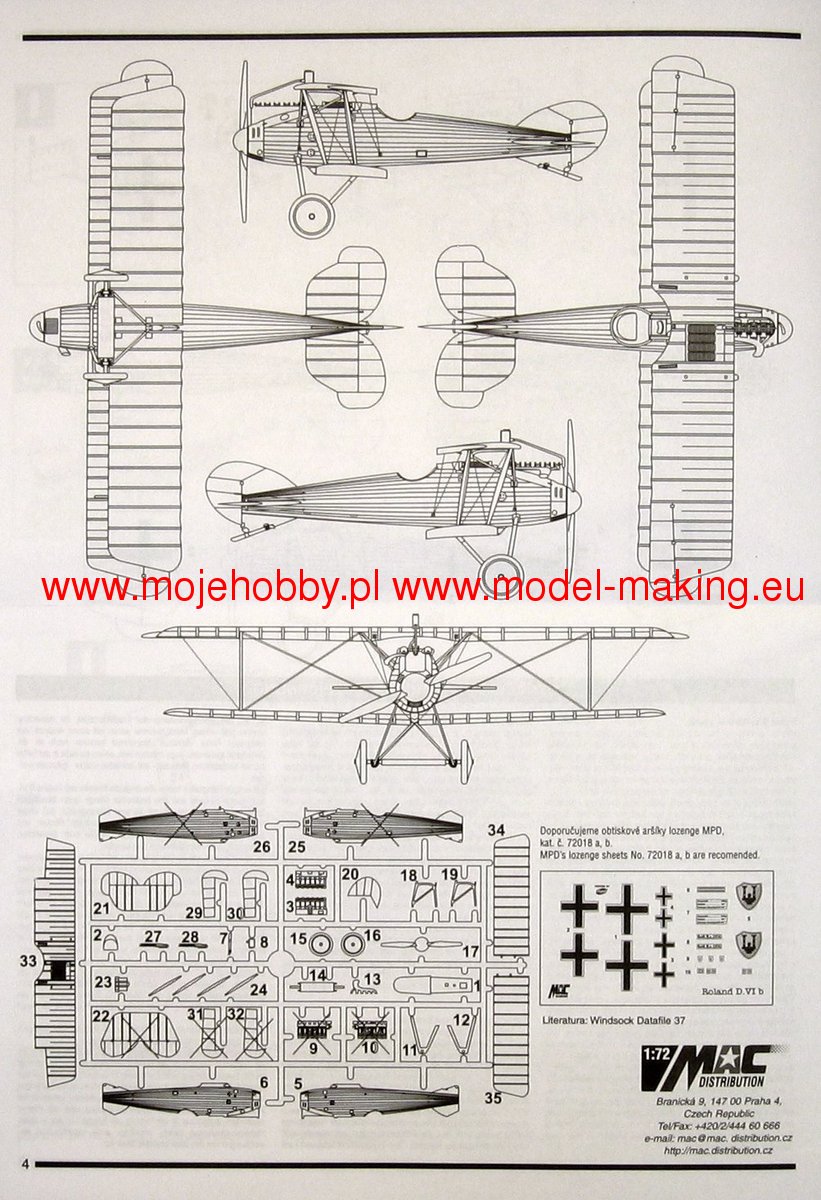 The Roland D.VI is a German wooden fighter biplane manufactured by the Berlin company Luft-Fahrzeug-Gesellschaft. The machine was built at the end of 1917, and it entered service in mid-May 1918. The fuselage was made in the "Klinkerrumpf" technique, which allows for the creation of highly streamlined and aerodynamically excellent wooden hulls. This technique was based on the creation of two streamlined shells (made of plywood strips) which were joined on a light skeleton composed of ribs and stringers. Perhaps the only downside to this technique was that it was extremely labor intensive. A Daimler D.III or Bz.IIIa engine served as the drive. The Roland D.VI plane was used during the military operations in the summer of 1918 in fighter squadrons, mainly in: Jasta 23b, Jasta 32b, Jasta 33, Jasta 35b. Despite its good performance, it did not play a significant role as it was replaced by simpler Fokkers D. VII. Total production was 359 units. The only surviving specimen in the world is on display at the Polish Aviation Museum in Krakow. Technical data: length: 6.3 m, wingspan: 9.4 m, height: 2.8 m, maximum speed: 182 km / h, climb speed: 4.39 m / s, practical ceiling: 5700 m, armament: fixed - 2 machine guns LMG 08/15 cal.7.92mm.