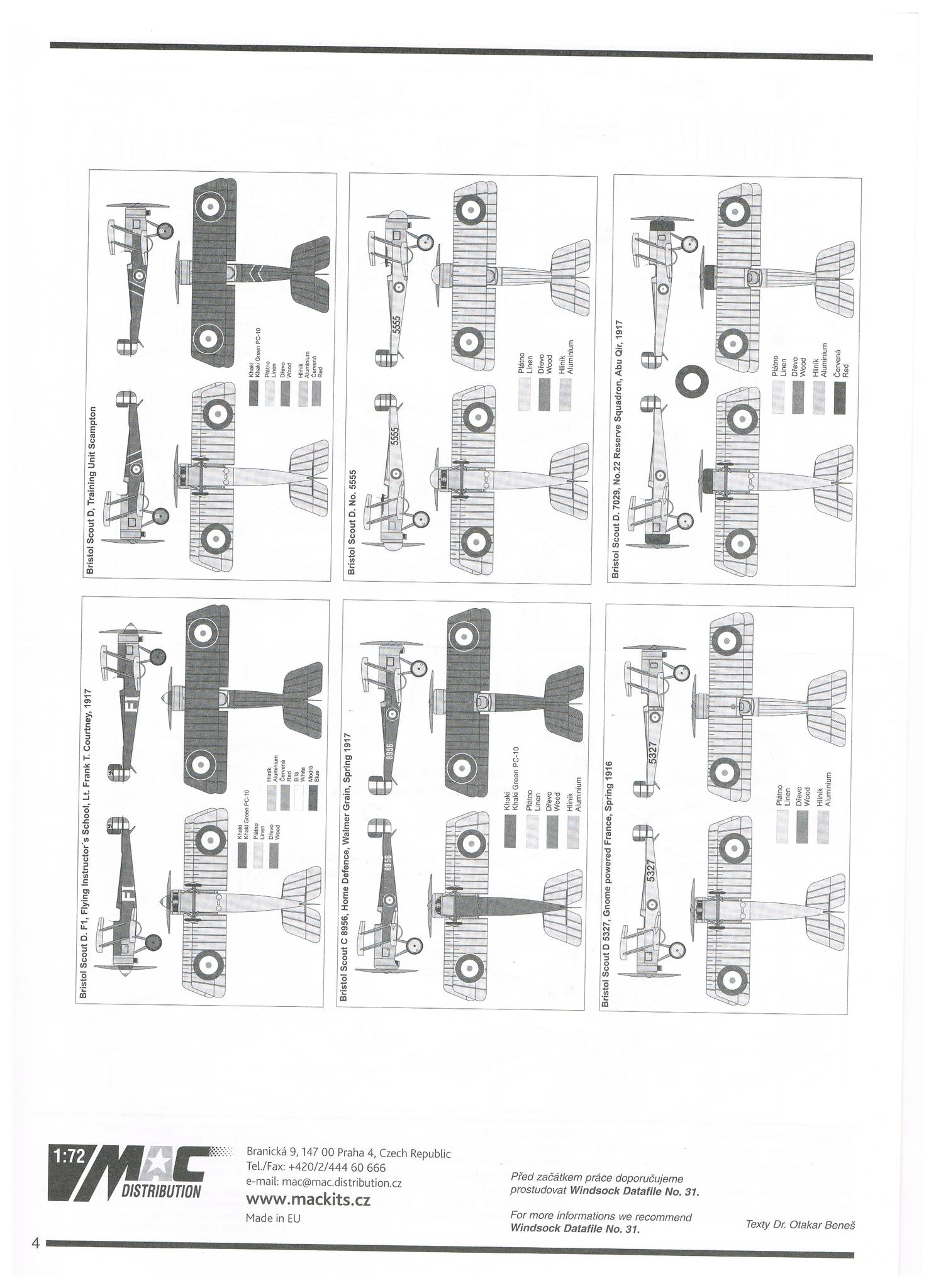 The Bristol Scout is a British single-engine single-seat reconnaissance plane with a mixed wood and canvas structure. Originally the machine was a racing plane, but from version B it served in the British Air Force. The flight of the prototype took place in February 1914, and from the beginning of the war Scout B served in the 3rd and 5th squadrons of the Royal Flying Corps. Initially, they were used only as reconnaissance machines, but at the turn of 1914/1915 pilots flying them began to arm them on their own initiative, making them the first fighters. Four versions of the aircraft were created: from A to D, and 374 aircraft were produced for all versions. Technical data: Maximum speed: 151 km / h, speed of climb: 2.74 m / s, maximum ceiling 4900 m.