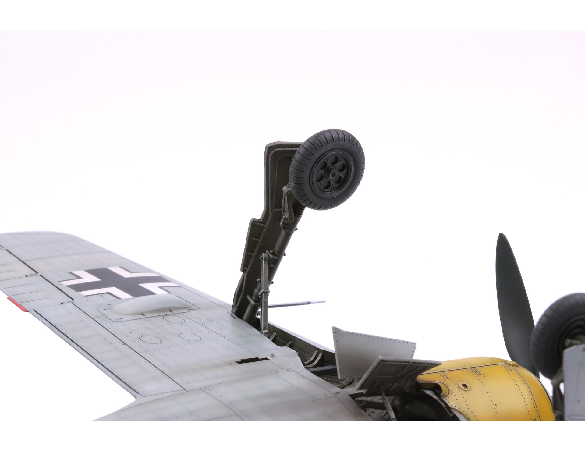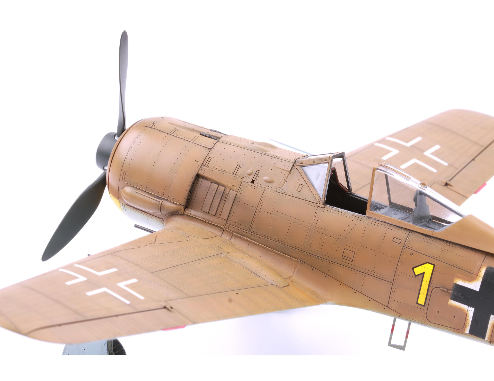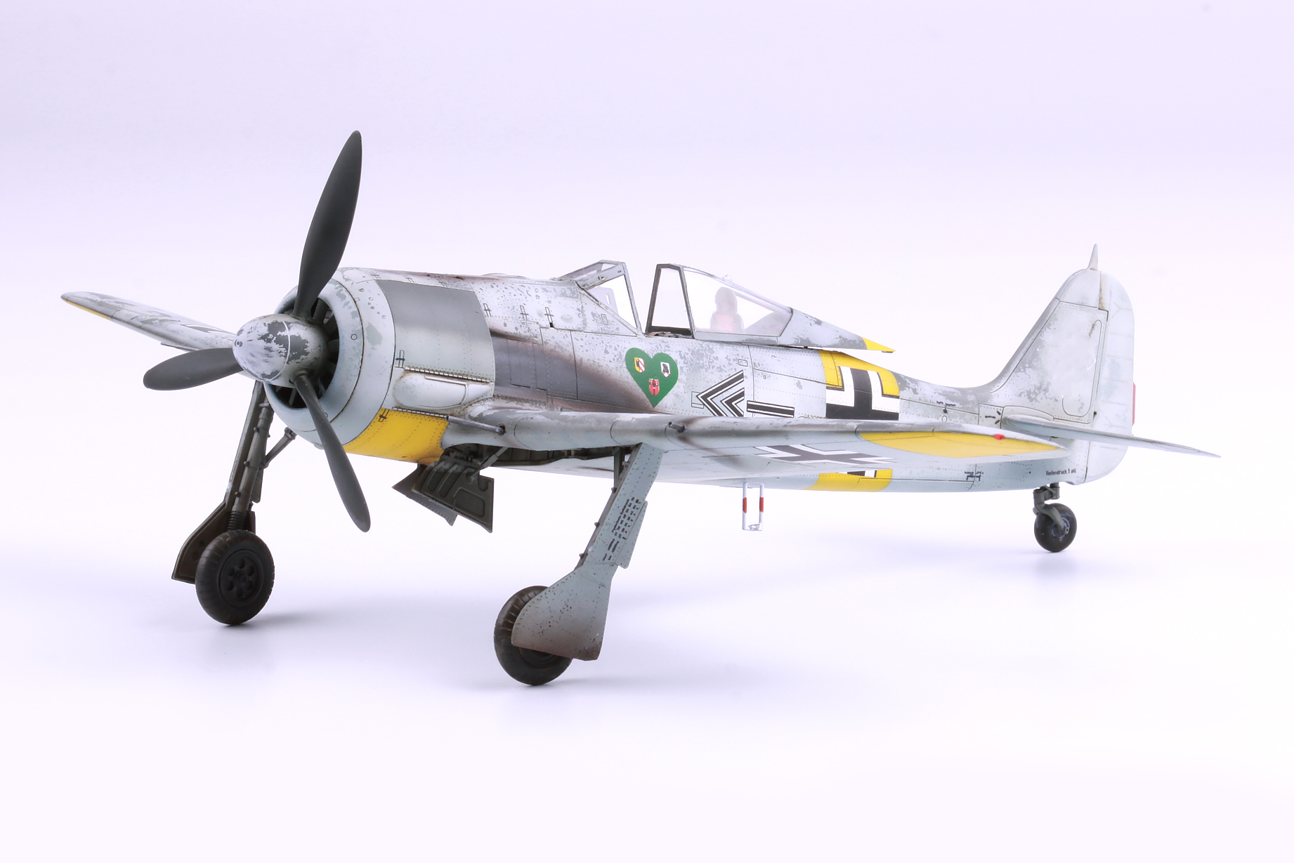 The Focke-Wulf Fw-190 is a German, single-engine, full-metal fighter aircraft with a covered cabin in the low wing design of the Second World War. The pilots considered the Fw-190 to be a better aircraft than the Messerschmitt Bf-109. A self-supporting low wing with a working Fw-190 coating was commissioned by the Luftfahrtministerium, assembled in the fall of 1937. Kurt Tank submitted two propulsion proposals - the first with a liquid-cooled Daimler-Benz DB 601 engine, and the second with the new BMW 139 radial engine. The latter was chosen, and the work started in the spring of 1938 was headed by Obering R. Blaser. The first prototype of the Fw-190V1 was ready in May 1939, and it was flown in Bremen on June 1, 1939 by Captain Hans Sander. The second prototype, the FW-190V2, armed with two MG131 and two MG17 machine guns - all 7.92 mm caliber, was flew in October 1939. To reduce aerodynamic drag, both were equipped with a tunnel air inlet in the propeller cap, but problems with overheating of the engine resulted in a return to the proven NACA shield design. Before the tests of these prototypes began for good, the decision was already made to replace the BMW 139 engine with a stronger, but longer and heavier BMW 801. It required many changes, strengthening the structure and moving the cabin back, which later became a source of problems with the center of gravity. The advantage was the removal of problems with exhaust gas permeation and overheating of the cabin interior due to its direct vicinity to the BMW 139 engine. The third and fourth prototypes were abandoned, and the Fw-190V5 with the new engine was completed at the beginning of 1940. Later, it received wings with a wingspan enlarged by one meter (from the original 9.5 m), which made it 10 km / h slower, but it increased the rate of climb and improved maneuverability. It was marked Fw-190V5g, and the variant with the shorter wing was Fw-190V5k. The first seven machines of the Fw-190A-0 information series had a short wing, the rest - a longer one. The first operational unit equipped with the Fw-190 - 6./JG 26 stationed at Le Bourget, declared its operational readiness in August 1941 and from the first meeting of the new fighter with the British Supermarine Spitfire, its advantage over them became apparent. During the war, a dozen or so versions of this great plane were created. The machines of the "A" version, along with a dozen or so modernizations, served as fighter planes. The versions marked "B" and "C" were only prototypes of high-altitude fighters intended for fighting strategic bombers, but they did not enter into serial production. The "D" variant, as the only one of the Fw-190s, was powered by the new 1750HP Jumo 213A engine and was the German response to the P-51 Mustang. The new engine extended the fuselage by several dozen centimeters. This variant also performed mainly hunting and high-altitude fighter tasks. Numerous variants of the "F" version were used as fighter-bombers as direct support of the battlefield. The "G" version played the same role as the "F" version, but had a greater range. During the entire war, over 20,000 copies of this one of the best fighters of World War II were produced. Technical data (version Fw-190A-8): length: 9m, wingspan: 10.51m, height: 3.95m, maximum speed: 656km / h, rate of climb: 15m / s, maximum range: 800km, maximum ceiling 11410m , armament: fixed-2 MG131 13mm machine guns and 4 MG151 20mm cannons (2 MG 151 / 20E cannons for the D-9 version). 3_edu82142_instruction_sheet.pdf