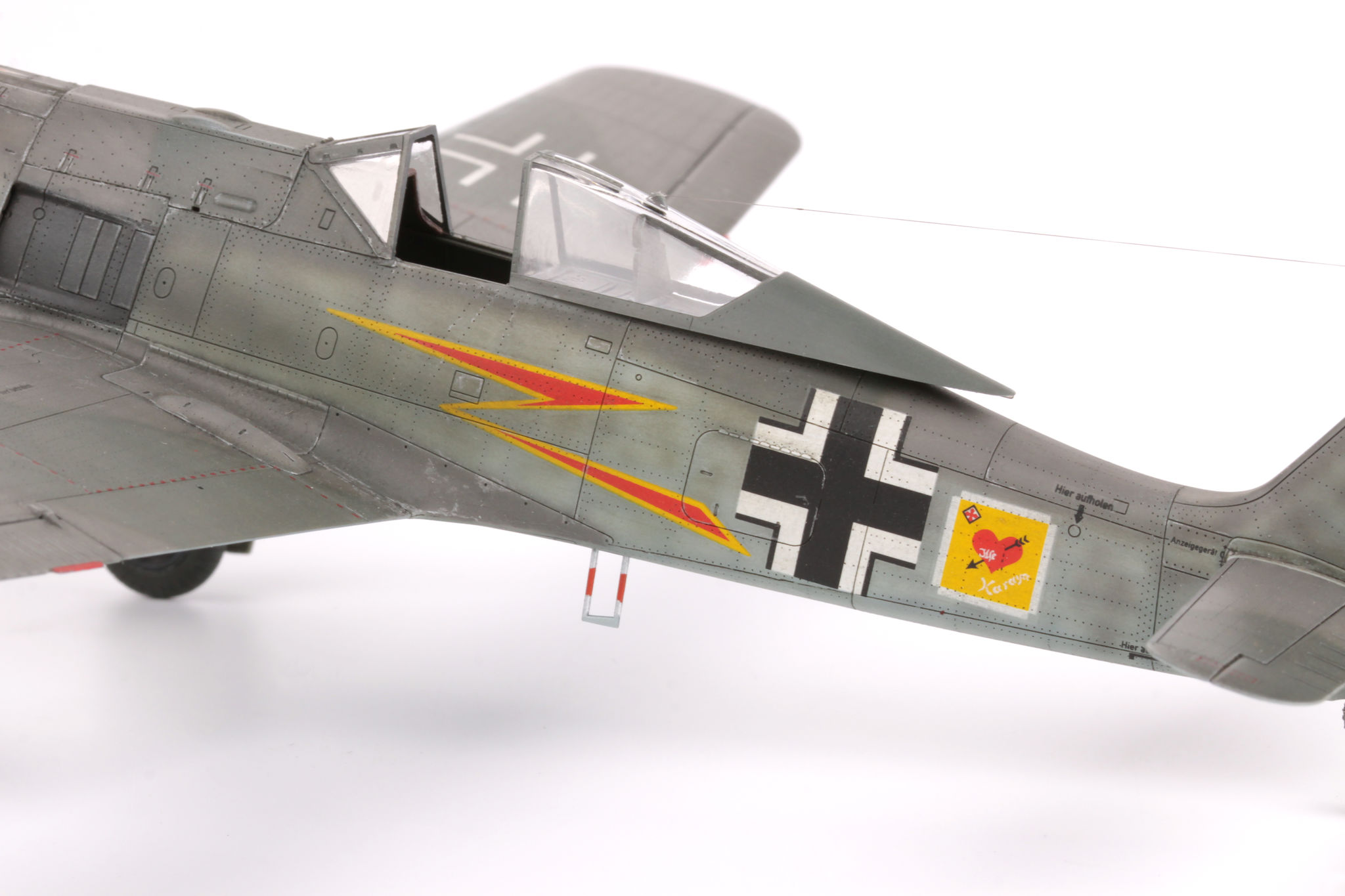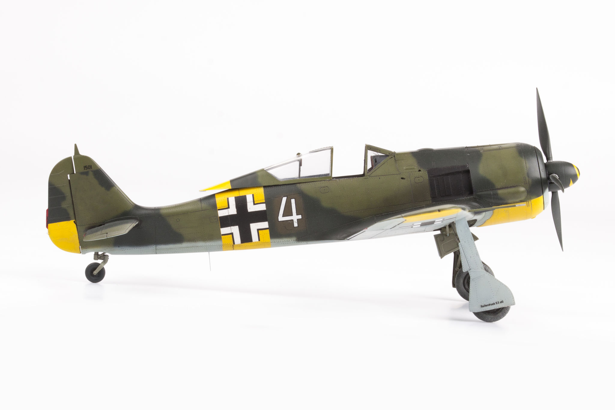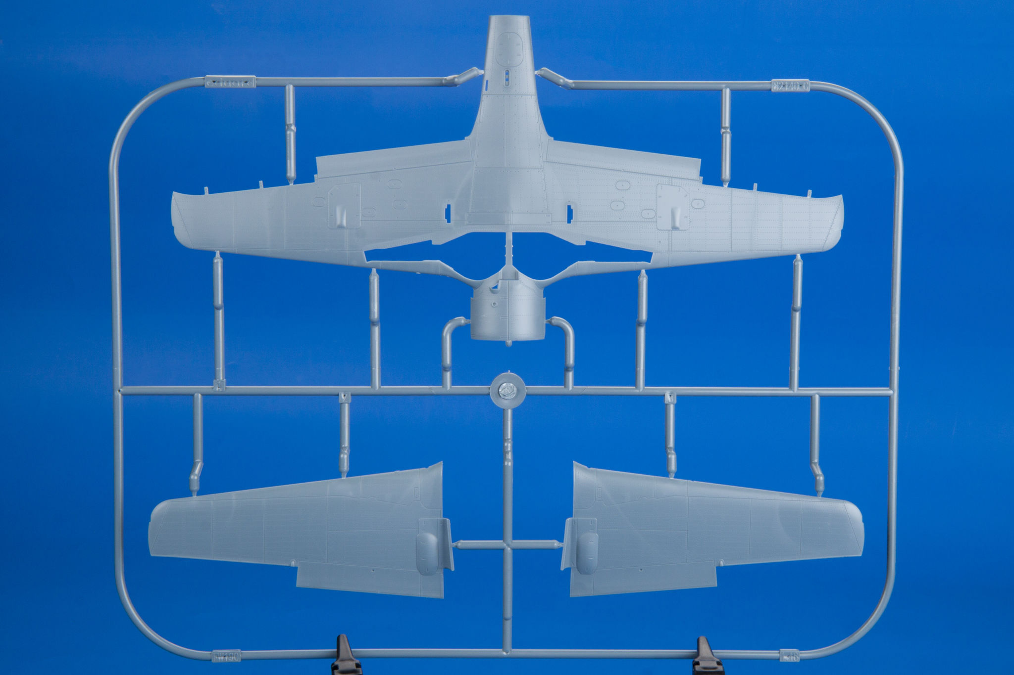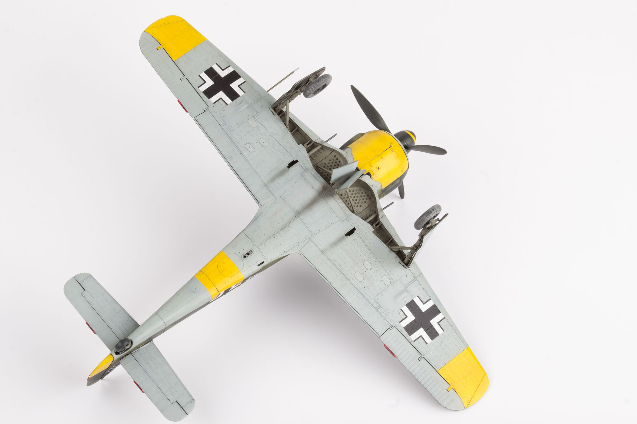 The Focke-Wulf Fw-190 is a German, single-engine, full-metal fighter aircraft with a covered cabin in the low wing design of the Second World War. The pilots considered the Fw-190 to be a better aircraft than the Messerschmitt Bf-109. A self-supporting low wing with a working Fw-190 coating was commissioned by the Luftfahrtministerium, assembled in the fall of 1937. Kurt Tank submitted two propulsion proposals - the first with a liquid-cooled Daimler-Benz DB 601 engine, and the second with the new BMW 139 radial engine. The latter was chosen, and the work started in the spring of 1938 was headed by Obering R. Blaser. The first prototype of the Fw-190V1 was ready in May 1939, and it was flown in Bremen on June 1, 1939 by Captain Hans Sander. The second prototype, the FW-190V2, armed with two MG131 and two MG17 machine guns - all 7.92 mm caliber, was flew in October 1939. To reduce aerodynamic drag, both were equipped with a tunnel air inlet in the propeller cap, but problems with overheating of the engine resulted in a return to the proven NACA shield design. Before the tests of these prototypes began for good, the decision was already made to replace the BMW 139 engine with a stronger, but longer and heavier BMW 801. It required many changes, strengthening the structure and moving the cabin back, which later became a source of problems with the center of gravity. The advantage was the removal of problems with exhaust gas permeation and overheating of the cabin interior due to its direct vicinity to the BMW 139 engine. The third and fourth prototypes were abandoned, and the Fw-190V5 with the new engine was completed at the beginning of 1940. Later, it received wings with a wingspan enlarged by one meter (from the original 9.5 m), which made it 10 km / h slower, but it increased the rate of climb and improved maneuverability. It was marked Fw-190V5g, and the variant with the shorter wing was Fw-190V5k. The first seven machines of the Fw-190A-0 information series had a short wing, the rest - a longer one. The first operational unit equipped with the Fw-190 - 6./JG 26 stationed at Le Bourget, declared its operational readiness in August 1941 and from the first meeting of the new fighter with the British Supermarine Spitfire, its advantage over them became apparent. During the war, a dozen or so versions of this great plane were created. The machines of the "A" version, along with a dozen or so modernizations, served as fighter planes. The versions marked "B" and "C" were only prototypes of high-altitude fighters intended for fighting strategic bombers, but they did not enter into serial production. The "D" variant, as the only one of the Fw-190s, was powered by the new 1750HP Jumo 213A engine and was the German response to the P-51 Mustang. The new engine extended the fuselage by several dozen centimeters. This variant also performed mainly hunting and high-altitude fighter tasks. Numerous variants of the "F" version were used as fighter-bombers as direct support of the battlefield. The "G" version played the same role as the "F" version, but had a greater range. During the entire war, over 20,000 copies of this one of the best fighters of World War II were produced. Technical data (version Fw-190A-8): length: 9m, wingspan: 10.51m, height: 3.95m, maximum speed: 656km / h, rate of climb: 15m / s, maximum range: 800km, maximum ceiling 11410m , armament: fixed-2 MG131 13mm machine guns and 4 MG151 20mm cannons (2 MG 151 / 20E cannons for the D-9 version). 3_edu82143_instruction_sheet.pdf