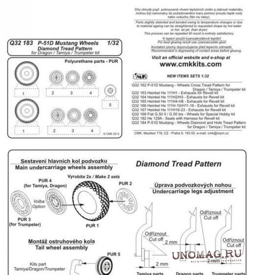 P-51D MUSTANG КОЛЕСА С РОМБОВИДНЫМ РИСУНКОМ ПРОТЕКТОРА / WHEELS DIAMOND TREAD PATTERN cmk 1/32