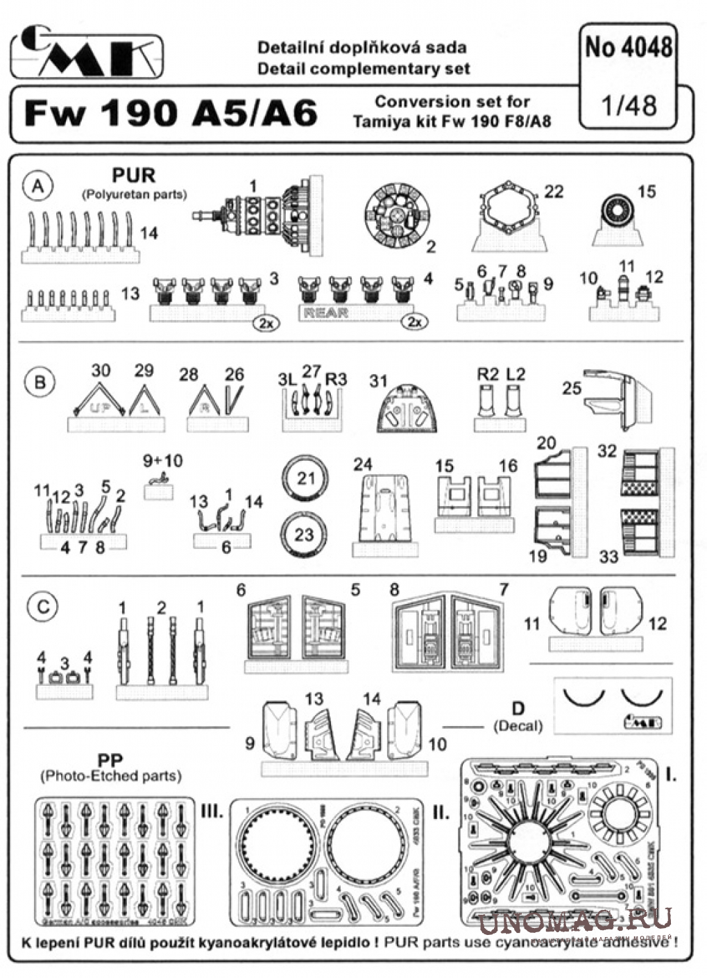 Купить НАБОР ДОПОЛНЕНИЙ FW 190 A5/A7 - ENGINE CONVERSION SET FOR TAM (1/48)