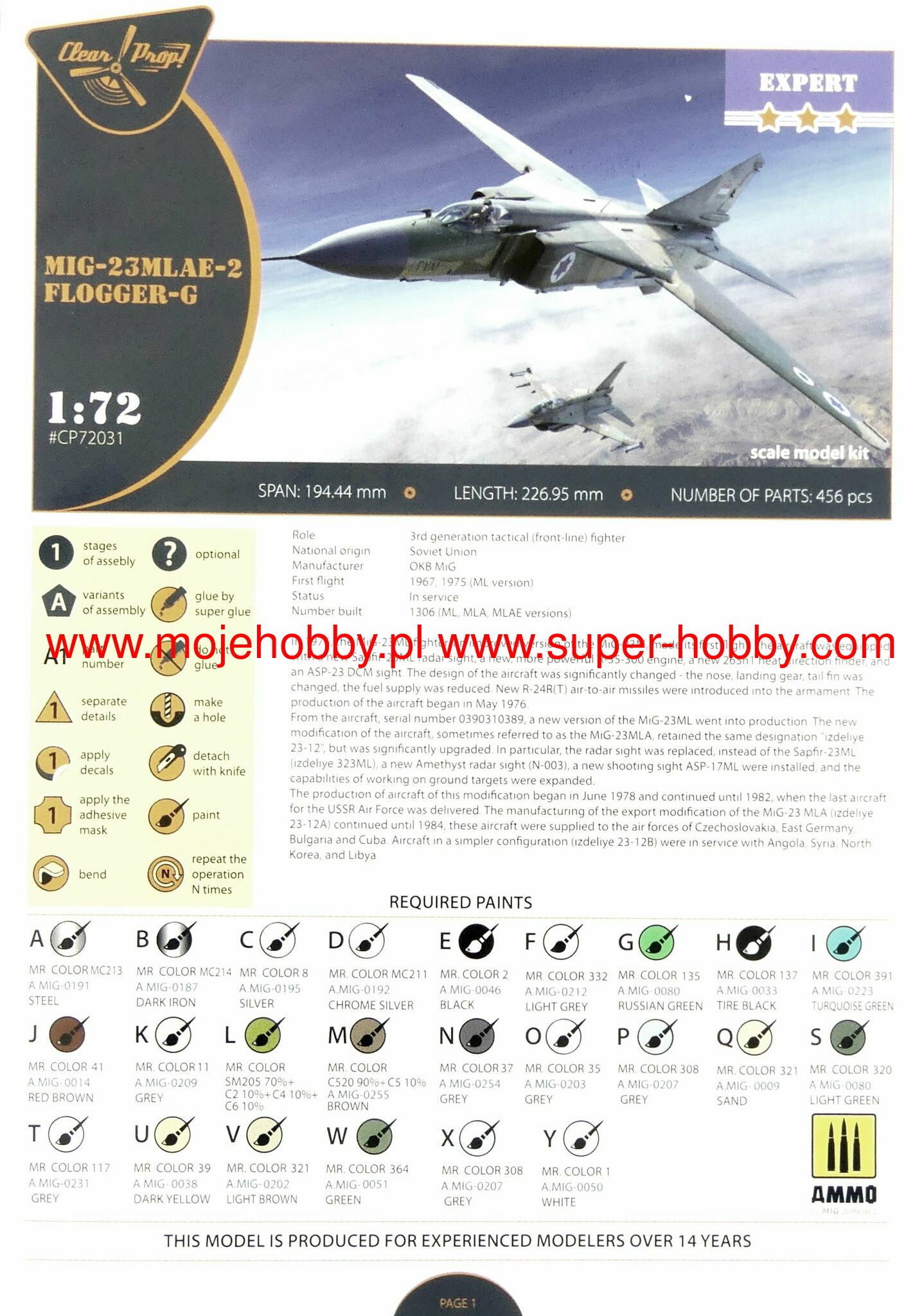 CLEAR PROP CP72031 ИСТРЕБИТЕЛЬ МИКОЯН-23МЛАE-2 FLOGGER-G EXPERT KIT 1/72