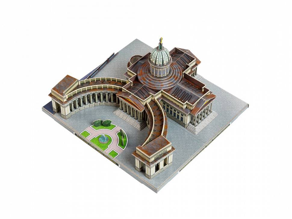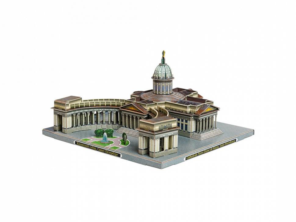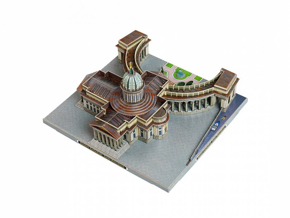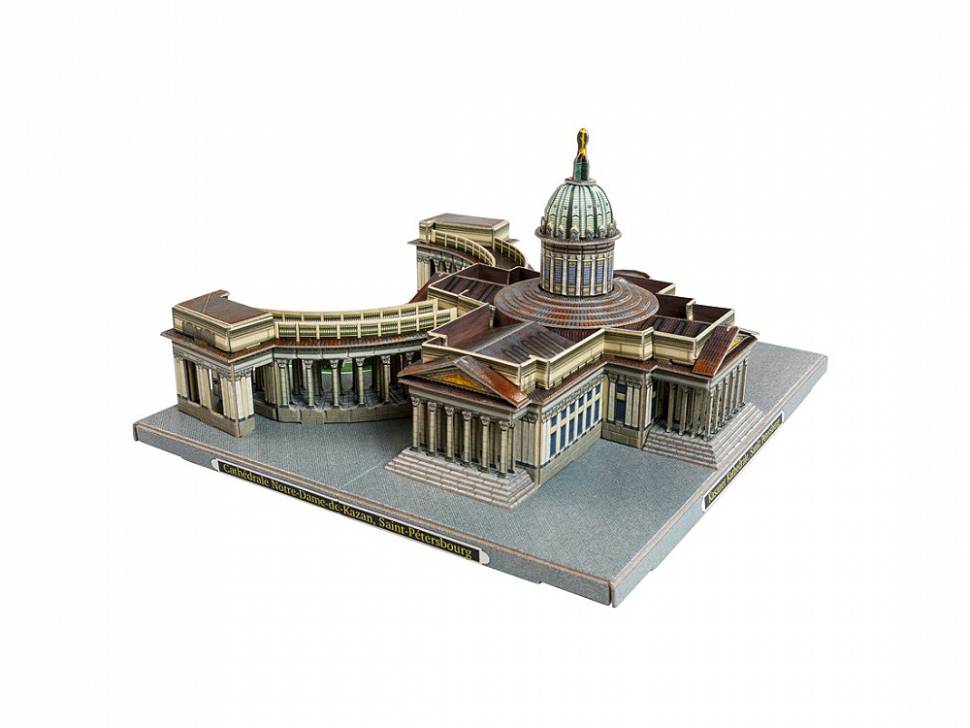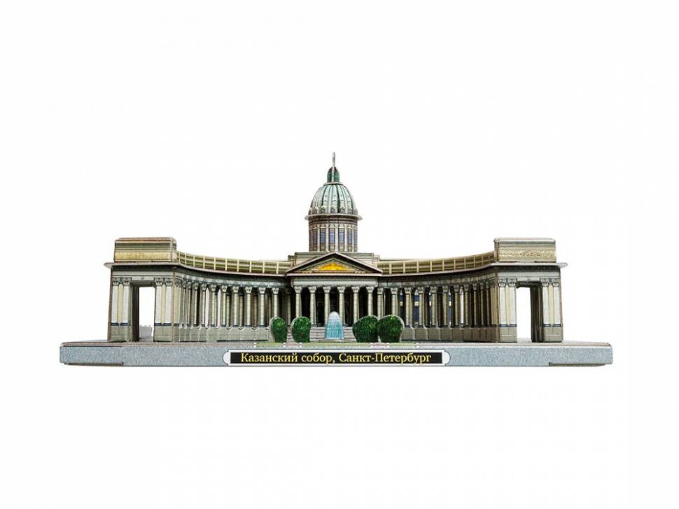 Казанский кафедральный собор один из крупнейших храмов Санкт-Петербурга. Построен на Невском проспекте в 18011811 годах архитектором Андреем Воронихиным для хранения чтимого списка чудотворной иконы Божией Матери Казанской. После Отечественной войны 1812 года приобрёл значение памятника русской воинской славы. 1813 году здесь был похоронен полководец Михаил Илларионович Кутузов и помещены ключи от взятых городов и другие военные трофеи. В 1932 году превращён в Музей истории религии и атеизма. С 1991 года действующий храм, несколько лет сосуществовавший с экспозицией музея. С 2000 года кафедральный собор Санкт-Петербургской епархии Русской православной церкви. Данный сувенир станет отличным памятным подарком для гостей Северной Столицы. Количество деталей - 101 Сложность сборки - 2 Размер - 17.5х18.5х10.2 см