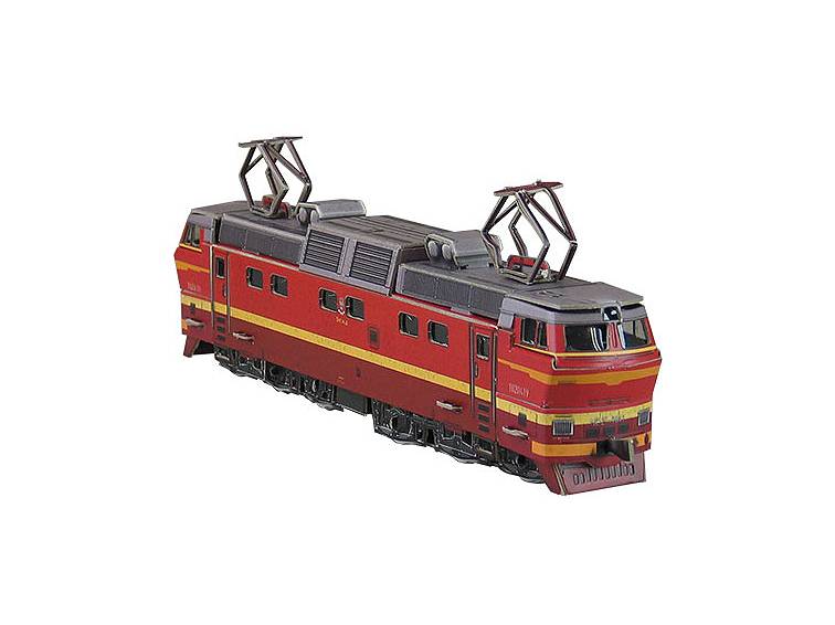 До недавнего времени этот шестиосный пассажирский электровоз был основным локомотивом пассажирского сообщения на железнодорожных линиях направления Москва - Санкт-Петербург. Водил он также и знаменитые пассажирские составы "Красная стрела". Электровоз производился в чехословацкой республике на заводах Шкода по заказу советских железных дорог. С 1972 по 1976 годы было изготовлено 118 локомотивов. Место изготовления - Чехословакия - зашифровано в обозначении локомотивов ЧС, тип 2. Буква Т в названии означает, что электровоз оборудован особым электрическим тормозом, позволяющим осуществлять плавное торможение. И сегодня надежные локомотивы этого типа еще находятся в строю и водят пассажирские составы. Стендовая модель соответствует колее 16,5 мм, ее можно установить на стандартные рельсы масштаба 1/87 (H0). Колеса, к сожалению, не крутятся, но общего впечатления это не портит. Аккуратно собранная модель удивит любого зрителя. С двух шагов невозможно даже предположить, что модель выполнена из картона! Детали оконных стекол из тонкого прозрачного пластика также входят в набор. В наборе присутствует дополнительная картонная деталь сцепки для соединения локомотива с вагонами производства "Умная бумага". Вагоны соединяются вполне надежно и весь состав можно передвигать за локомотив. Для сборки модели не понадобятся режущие инструменты или клей. Детали уже вырезаны и нужно просто вынуть их из листа картона и соединить между собой. Материал модели прочный двусторонний картон толщиной 1 мм Количество деталей - 57 Сложность сборки - 4 Размер - 24 х 4 х 8 см