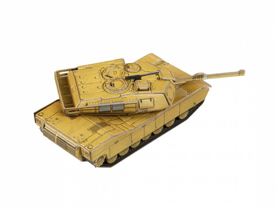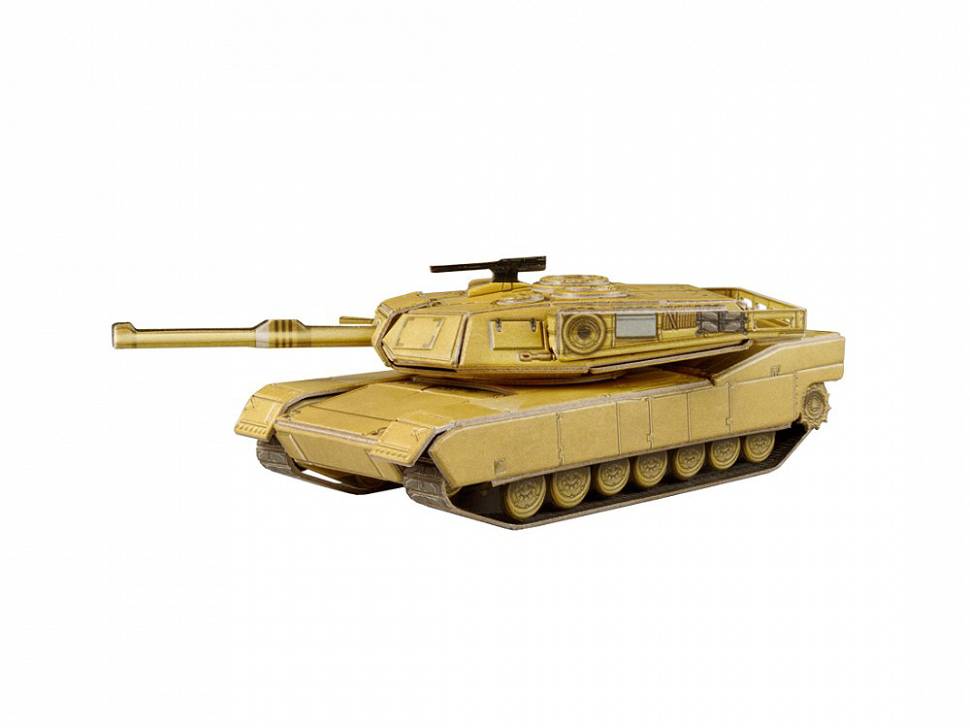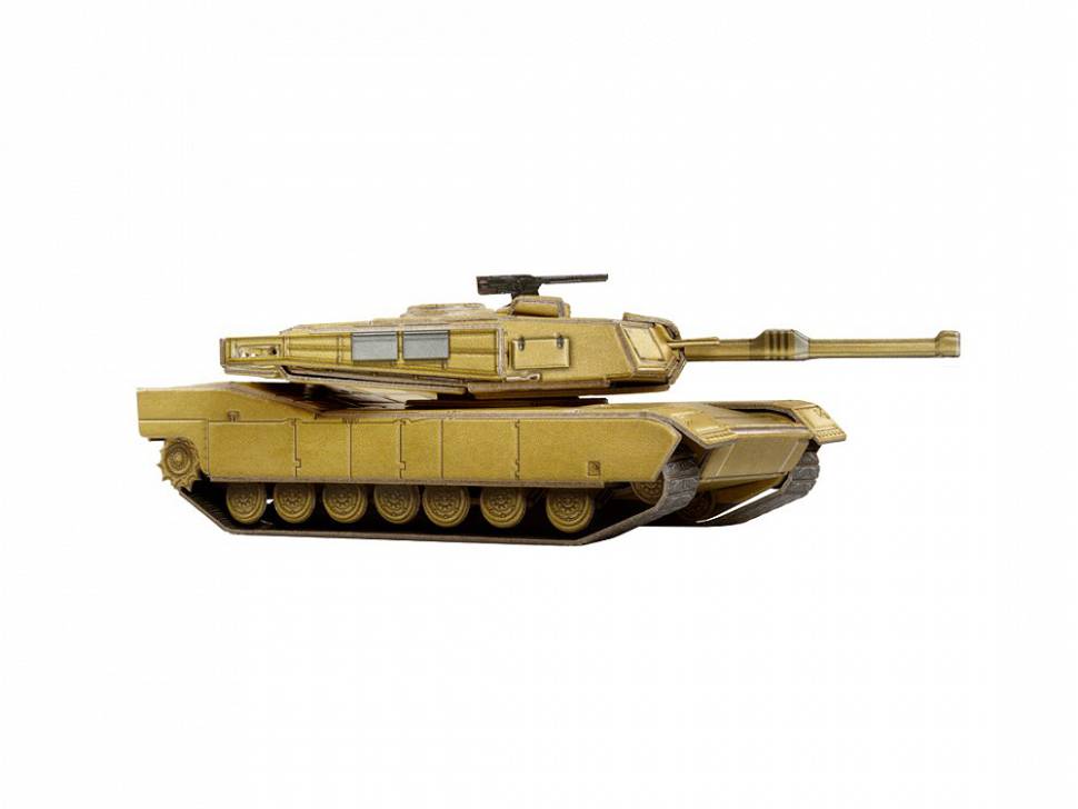 M1 Abrams основной боевой танк США. Стоит на вооружении армии и морской пехоты США, также Египта, Австралии и Марокко и ряда ближневосточных государств. Назван в честь генерала Крейтона Абрамса. Концептуально спланированный для ведения боевых действий в составе бронетанковых подразделений, М1 Абрамс положил начало использованию целого ряда новаторских решений, включая многотопливный газотурбинный двигатель, инновационную комбинированную броню Chobham на базе керамических материалов, компьютерную систему управления огнём, раздельное хранение боезапаса с использованием вышибных панелей. Очень простая в сборке реалистичная модель, выполненная в масштабе 1/72. Количество деталей - 36 Сложность сборки - 2 Размер - 14х4.5х5.2 см