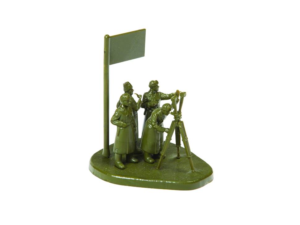 Набор состоит из четырех фигурок советских штабных офицеров в зимней униформе в масштабе 1/72. При разработке набора были использованы новейшие 3D-технологии, благодаря которым внешний вид советских войск начального периода Великой Отечественной войны воспроизведен в точности. Входящие в набор миниатюры превосходно детализированы и могут быть собраны без использования клея. Данный набор будет актуален как для моделиста, желающего создать эффектную диораму, так и для игрока в настольные военно-тактические игры, который сможет пополнить свою армию новым отрядом. По штату, в начальный период Великой Отечественной войны штаб полка РККА состоял из 8 человек комначсостава, одного делопроизводителя в звании старшины и двух писарей-рядовых. Штаб должен был руководить подразделениями, входящими в состав полка, и координировать действия полка с вышестоящим командованием и соседними частями. Вооружение штабных офицеров РККА состояло, главным образом, из пистолетов ТТ. Комиссионный товар