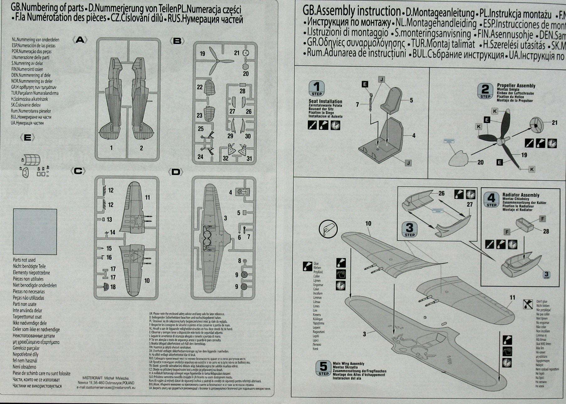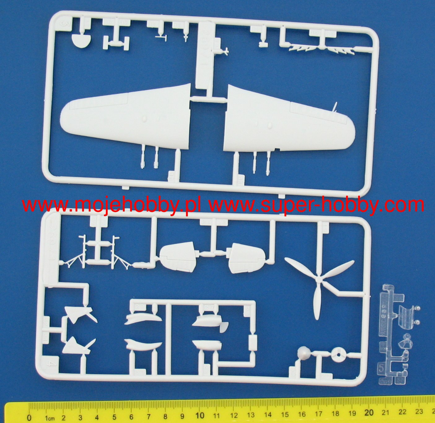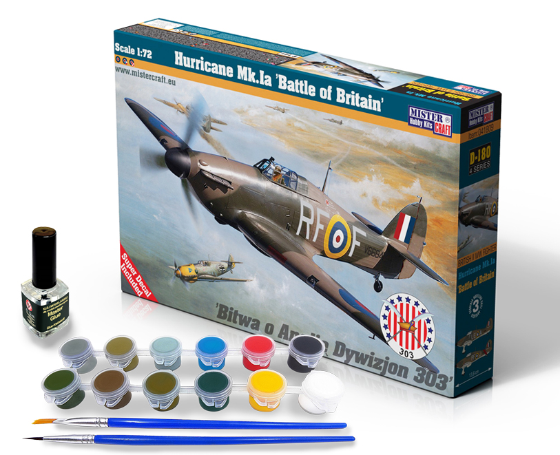 Note: Comany Mistercraft frequently changes, without any notice, the decals that come with the model, so they may differ from the photos and descriptions on our website. If you need a specific version, please let us know about that by entering the appropriate notice in the comments field when placing the order. The Hawker Hurricane is a British single-engine single-engine fighter with a metal structure with canvas elements from the Second World War. Acting on all fronts during the Second World War, the Hawker Hurricane earned the name of one of the best and most ubiquitous airplanes of that time, both as a fighter and an attack plane. Undoubtedly, however, the most significant card in the history of this machine was its contribution to the victory of the British in the Battle of Britain in 1940. The plane constructed by Sydney Camm at the request of the Ministry of Defense was supposed to become the main force of the British air fleet. For the first time, a prototype of an aircraft powered by a Rolls-Royce Merlin Mk.II engine took off on November 6, 1935, piloted by Georg Bulman. The tests were excellent and it was quickly decided to order 600 machines, the first of which entered service with the 111th squadron of the RAF in December 1937. When Great Britain declared war on Nazi Germany on September 3, 1939, the RAF had 19 ready-to-fight Hurricane squadrons, which started their military career with operations in France and Norway. During the course of the war, several versions of this very successful plane were created. The first mass-produced version was the Mk.I with the Merlin III engine. From 1940, the Mk.II versions with the new Merlin XX engine with a capacity of 1280 HP began to be delivered to the units. It was this version, as the first variant of Hurricane, that performed primarily assault and battlefield support tasks. Its best variant was the Hurricane Mk.IID, used by min. in the North Africa campaign in 1942. The third version is the Hurricane Mk.IV with the new Merlin 24/27 engine, 1620HP. It served as an assault machine armed with bombs, unguided missiles and Vickers S cannons until 1944. A sea variant (Sea Hurricane) was also produced, which served on aircraft carriers and on specially adapted merchant ships (Sea Hurricane Mk.IA). Technical data (Mk.IIC version): length: 9.84m, wingspan: 12.19m, height: 4m, maximum speed: 547km / h, rate of climb: 14.1m / s, maximum range: 965km, maximum ceiling 10,970m Armament: fixed - 4 20mm Hispano Mk.II cannons, sling - up to 460 kg of bombs.