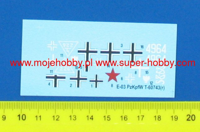 Note: Comany Mistercraft frequently changes, without any notice, the decals that come with the model, so they may differ from the photos and descriptions on our website. If you need a specific version, please let us know about that by entering the appropriate notice in the comments field when placing the order. The first prototypes of the T-60 light reconnaissance tank were made in 1941. In the same year, mass production started, which ended in 1943 with the production of over 6,000 copies of this car. The T-60 tank was powered by a 70 HP GAZ-202 engine or an 85 HP GAZ-203 engine. Its main armament was a 20mm automatic cannon (housed in a rotating turret), and its auxiliary armament was a single 7.62mm DT machine gun. The T-60 tank was developed as the main reconnaissance tank of the Red Army. It had many advantages: above all, high maneuverability, a decent degree of mechanical reliability and good suspension. Its main disadvantage - very poor armor - can be explained by the tank's intended use for reconnaissance. Based on the basic version, several derivative versions were created, for example: the BM-8-24, which was a self-propelled unguided missile launcher, or the A-40 KT, which was a tank adapted to glider flights! The T-60 tank was used on a large scale by the Red Army from the end of 1941 until 1945, e.g. in the Stalingrad operation in 1942-1943 or in Operation Bagration in 1944.
