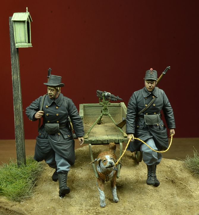 35107 WWI BELGIAN DOG-DRAWN CART WITH CREW 1914-15