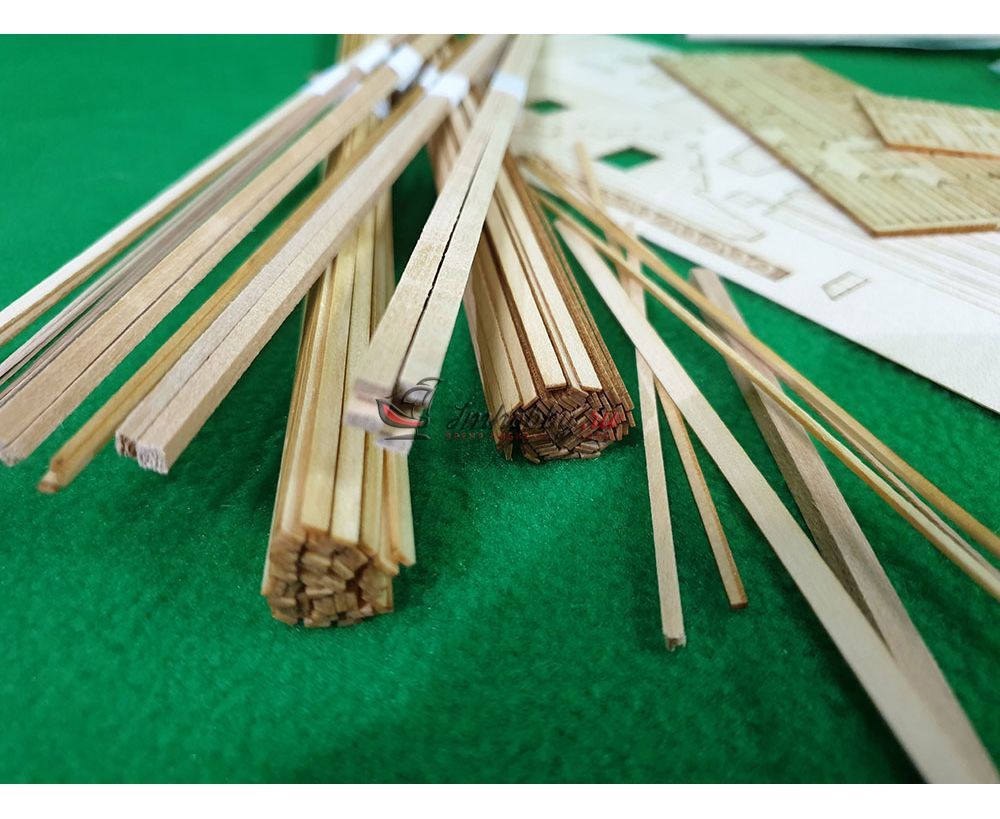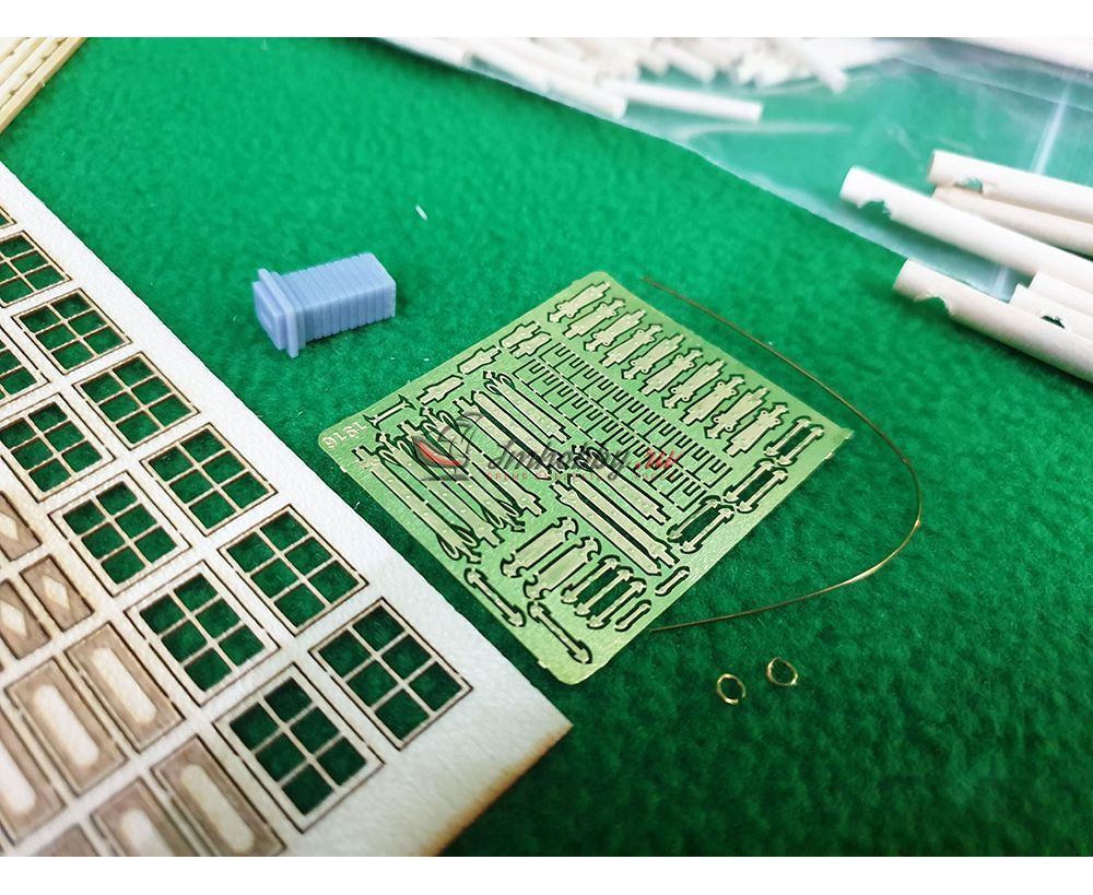 Представленная модель - это детальная копия дома крестьянина Волкова из села Илькино Меленковского района, XIX века. Дом состоит из трех частей: сеней, клети и избы. Сбоку пристроен наполовину крытый хозяйственный двор. В настоящее время находится в музее деревянного зодчества в Суздале. В наборе вы найдете все необходимые детали для сборки, в том числе бревна с уже пропиленными пазами, рейки для настила полов и устройства крыш, печную трубу, и другие уже готовые детали. Все двери в избе - открывающиеся, на миниатюрных петлях из фототравления. Их можно открыть и заглянуть внутрь. А в этом наборе есть еще и ворота с калиткой - конечно, их тоже можно будет открывать. Как и все подобные модели, представленная изба собирается так же, как и настоящий дом - с настилкой лаг под пол, стропильной системой крыш и другими элементами, без которых невозможно строительство дома. Таким образом, собирая избу в миниатюре, вы получите полное представление о том, как строится настоящий дом. Подробная пошаговая инструкция в схемах на 20 страницах. Спецификации:Масштаб: 1:72Количество деталей: 1414Длина: 180 ммШирина: 250 ммВысота: 110 ммПроизводитель - СВ-Модель, Россия.