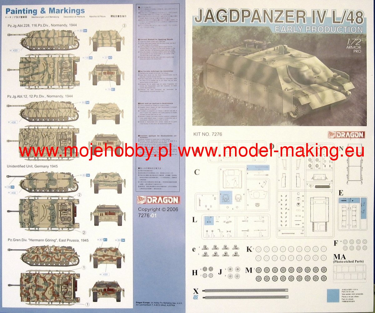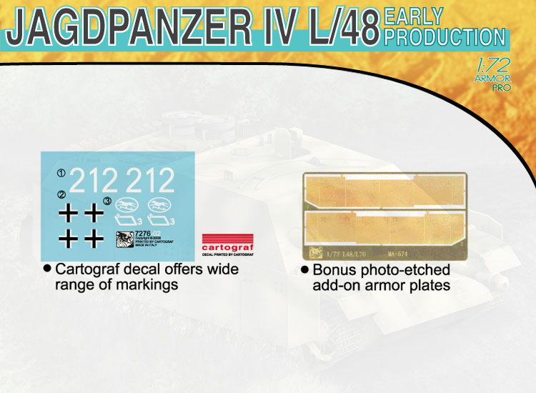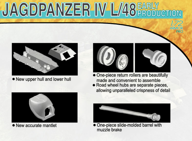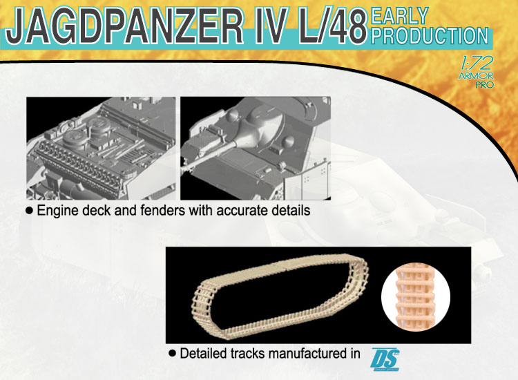 Jagdpanzer IV (Sd.Kfz 162) немецкая бронированная пушка и истребитель танков времен Второй мировой войны. Первые опытные образцы машины были изготовлены в 1943 году, а серийное производство продолжалось в период 1944-1945 годов, завершив выпуск около 2000 машин. Jagdpanzer IV был оснащен одним двигателем Maybach HL 120 TRM мощностью 300 л. Он был вооружен 1 75-мм пушкой PaK 39 или PaK 42 и 2 7,92-мм пулеметами MG42. Jagdpanzer IV создавался как дополнение к машине StuG III, а его ходовая часть, привод и трансмиссия были взяты от танка PzKpfw IV. Новая машина отличалась хорошим вооружением, низким габаритным силуэтом, облегчавшим организацию засад, удачной формой бронирования, особенно в передней части корпуса, и высокой маневренностью. В ходе серийного производства было создано три варианта разработки. Первый назывался Jagdpanzer IV L/48, был вооружен 75-мм противотанковой пушкой PaK 39 L/48 и производился на заводе Vomag. Второй и третий варианты очень похожие Jagdpanzer IV L/70(V) и L/70(A) были вооружены 75-мм длинноствольной пушкой PaK 42 L/70. Версии L/70 производились фирмами Vomag и Alkett, незначительно отличаясь друг от друга. Jagdpanzer IV начали поступать в строевые части в марте 1944 года. Первые боевые действия с применением новой истребитель танков были проведены на Итальянском фронте, а вскоре после этого и на Восточном фронте. Jagdpanzer IV широко использовался в Нормандской кампании (лето 1944 г.) и в наступлении в Арденнах в 1944-1945 гг.