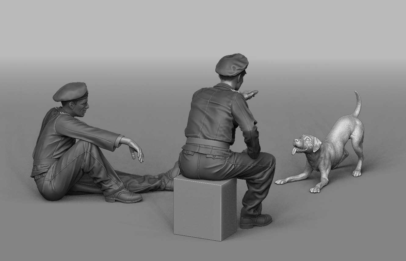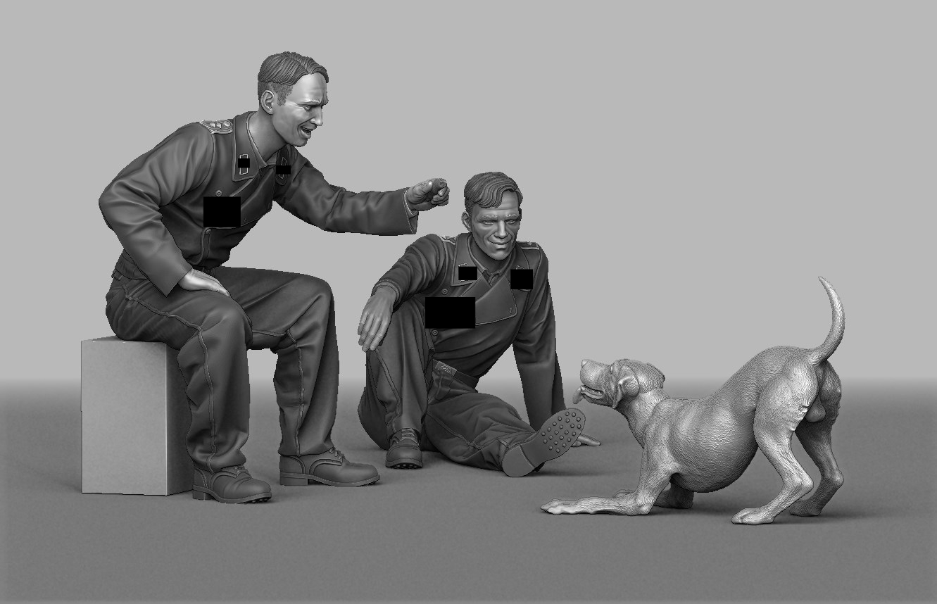 FI35-074 GERMAN TANKERS PLAYING WITH A PUPPY SET panzer art 1/35