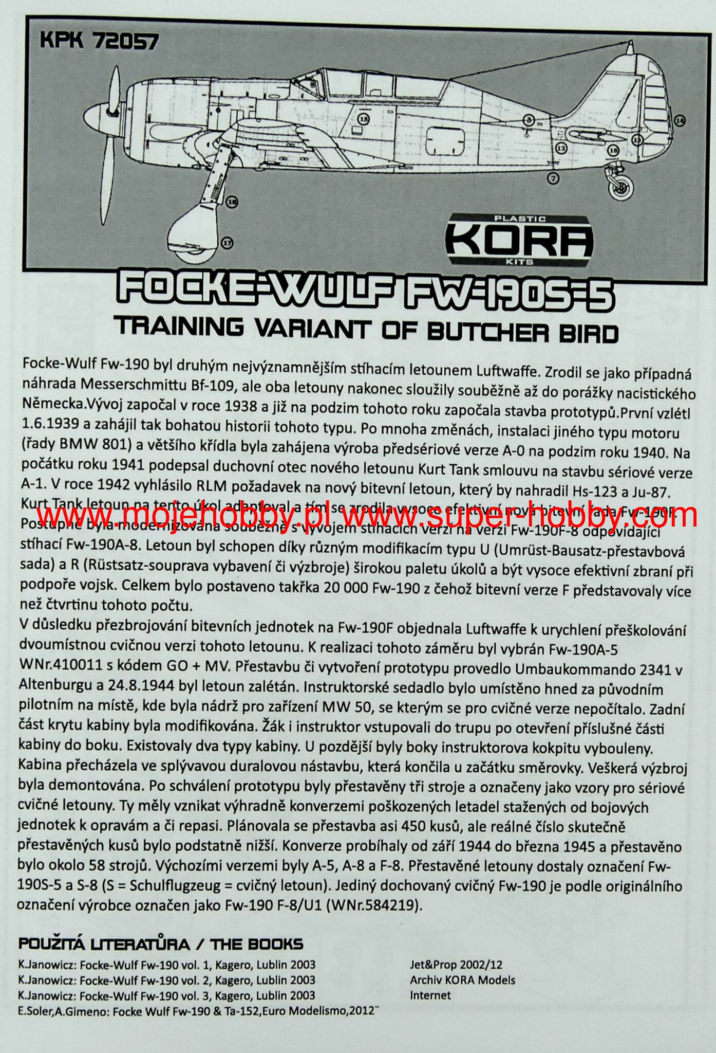 KPK72057 FOCKE-WULF FW-190S-5 GERMAN & BRITISH kora models 1/72