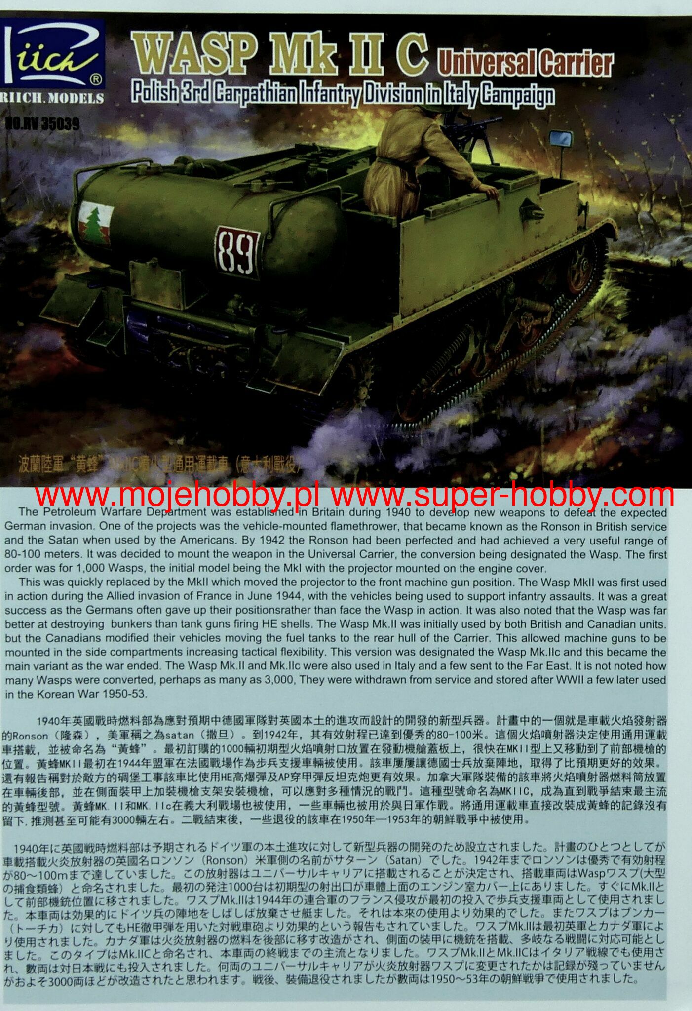 The Universal Carrier was a British tracked light armored vehicle from the Second World War. The first prototypes were built in 1935, and serial production was carried out in the period 1936-1945. In total, as many as 75,000 copies of this vehicle of all versions were created, which makes it the most frequently produced British armored vehicle during the Second World War. The Universal Carrier was powered by an engine Ford GAE or GAEA with 65 HP. The armament of the vehicle varied depending on the version, but most often it consisted of a 7.7 mm Bren machine gun. The Universal Carrier was derived from the VA D50 tractor developed at Vickers and was the result of a British Army contract for a lightweight, versatile tracked transporter. Originally, there were three versions of the car: the Vickers heavy rifle carrier, the Bren Gun Carrier, the Scout Carrier reconnaissance vehicle and the armored personnel carrier dedicated to Cavalry Carrier cavalry units. However, in 1939 it was decided to standardize all these vehicles and - with the outbreak of the war - put such a unified vehicle (Universal Carrier) into mass production. During World War II, the Universal Carrier was used for a wide variety of tasks: as an armored personnel carrier, as a reconnaissance vehicle or as an artillery tractor for a 6-pound 57mm gun. The Universal Carrier turned out to be a very successful, reliable, cheap to produce vehicle, susceptible to modernization and improvement. It was produced not only in Great Britain, but also in Canada, India and Australia. He served in many armies, including British, Australian and Canadian. It was also used by the Polish Armed Forces in the West (PES). The Universal Carrier vehicle served on all fronts where the British army fought in World War II: from the campaign in France in 1940, through the fighting in North Africa (1940-1943) and Italy (1943-1945), to the campaign in Normandy, in France and in West Germany (1944-1945). He also fought in the Far East against Japanese troops (1941-1945).