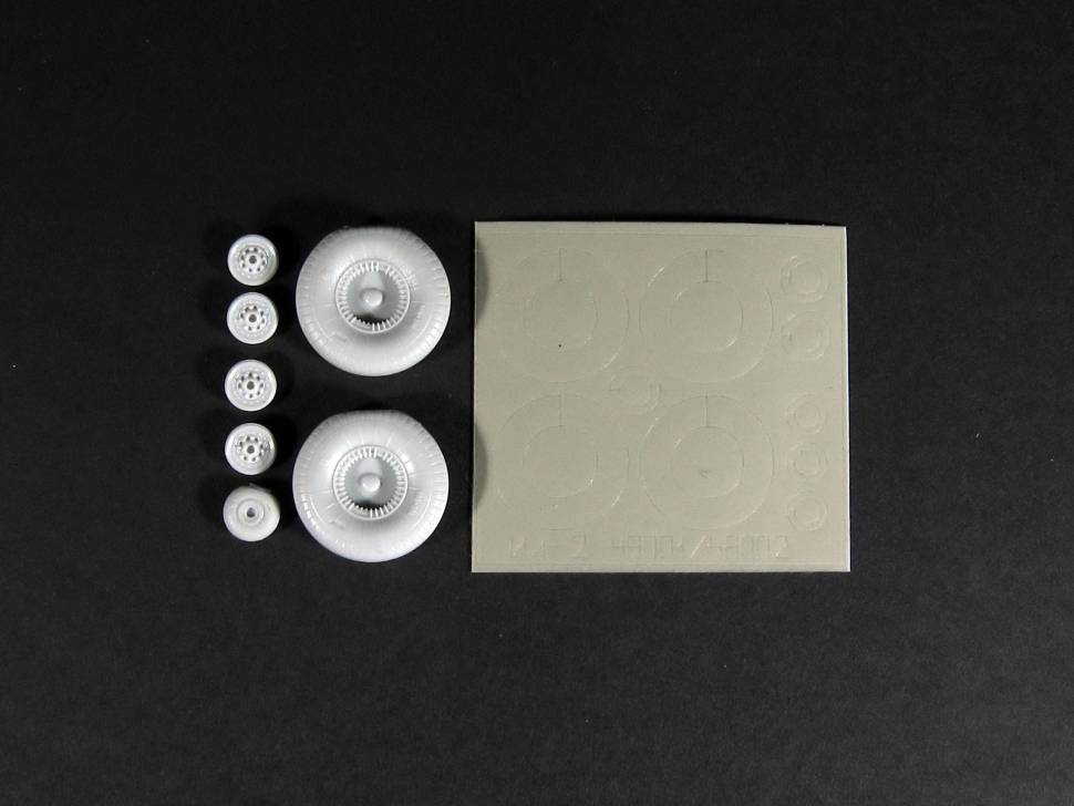 Набор колес шасси ранних на Ил-2 от Звезды. Масштаб 1:48. Набор выполнен из полиуретановой смолы. Набор комплектуется окрасочными масками. Уровень сложности: средний.