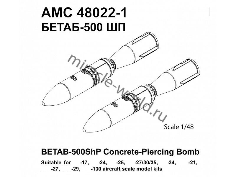 AM AMC 48022-1 БЕТАБ-500ШП (ПОЗДНИЕ СЕРИИ, 2ШТ.) /БЕТОНОБОЙНАЯ БОМБА/ 1/48 (1/48) продается в 2 магазинах. Выберите подходящий Вам интернет-магазин и перейдите по ссылке «В магазин».
