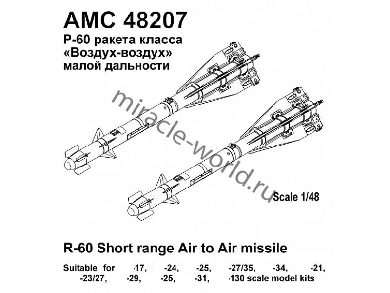 Купить AM AMC 48207 Р-60 (2ШТ.) /АВИАЦИОННАЯ УПРАВЛЯЕМАЯ РАКЕТА КЛАССА "ВОЗДУХ-ВОЗДУХ"/ 1/48 (1/48)