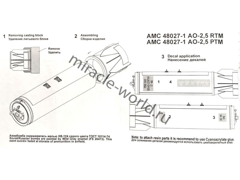 Купить AM AMC 48027-1 РБК-500 АО-2,5 РТМ (2ШТ.) БЕЗ НОСОВОГО ОБТЕКАТЕЛЯ /РАЗОВАЯ БОМБОВАЯ КАССЕТА/ 1/48 (1/48)