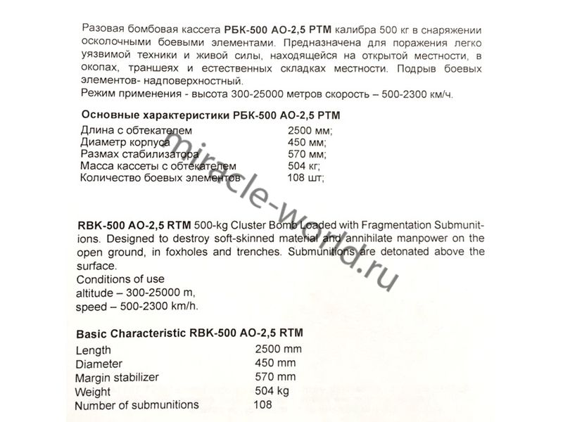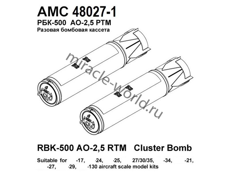 AM AMC 48027-1 РБК-500 АО-2,5 РТМ (2ШТ.) БЕЗ НОСОВОГО ОБТЕКАТЕЛЯ /РАЗОВАЯ БОМБОВАЯ КАССЕТА/ 1/48 (1/48) продается в 2 магазинах. Выберите подходящий Вам интернет-магазин и перейдите по ссылке «В магазин».
