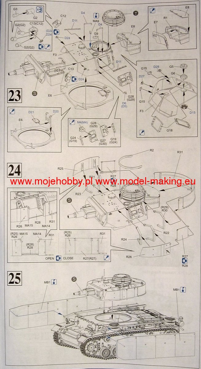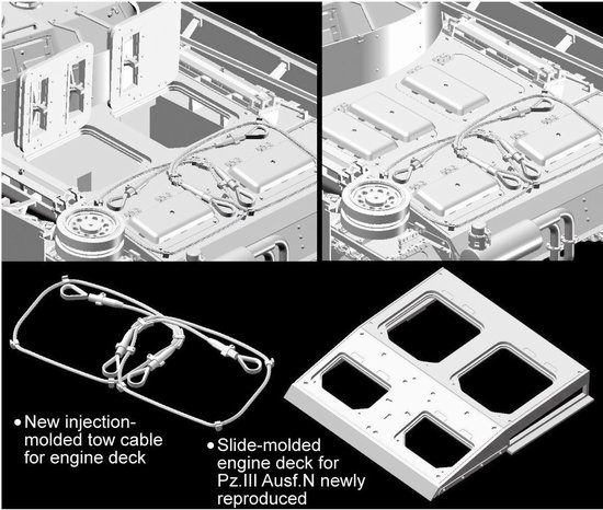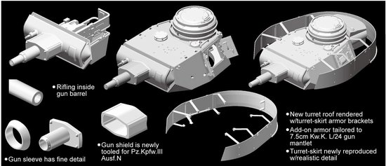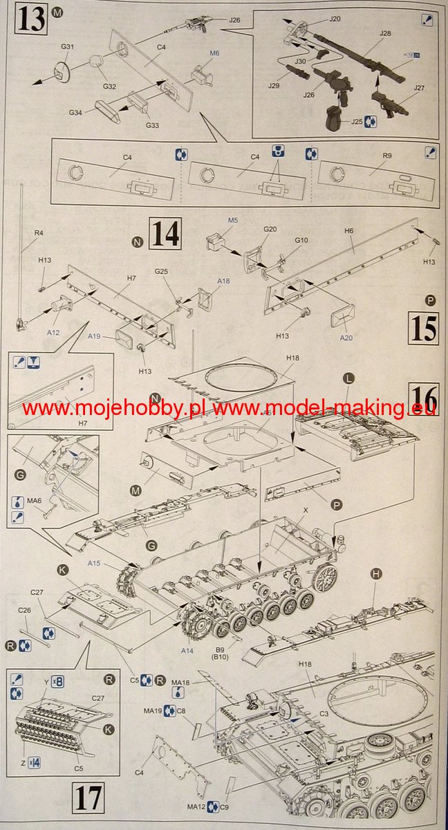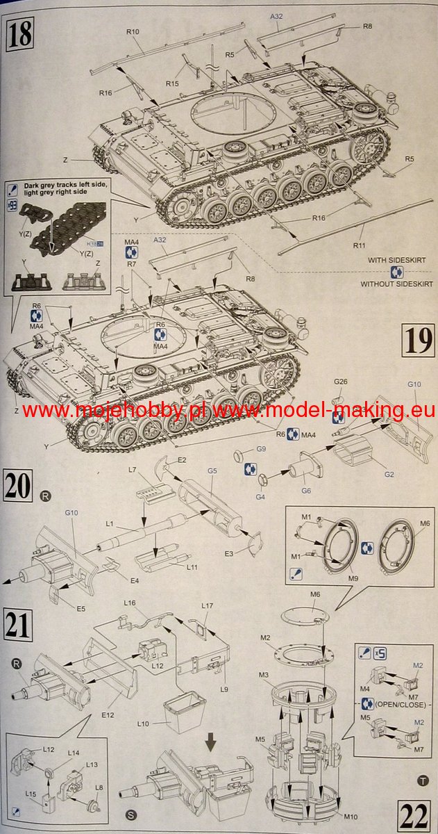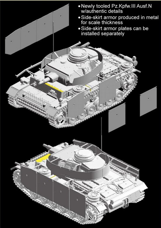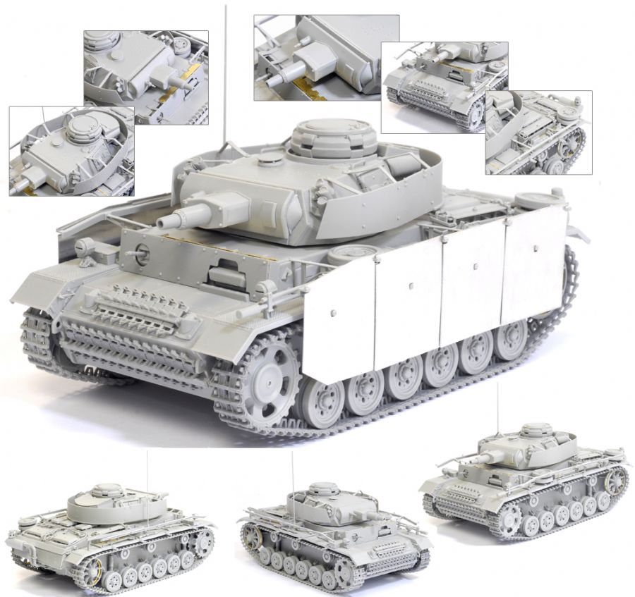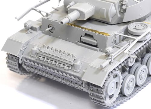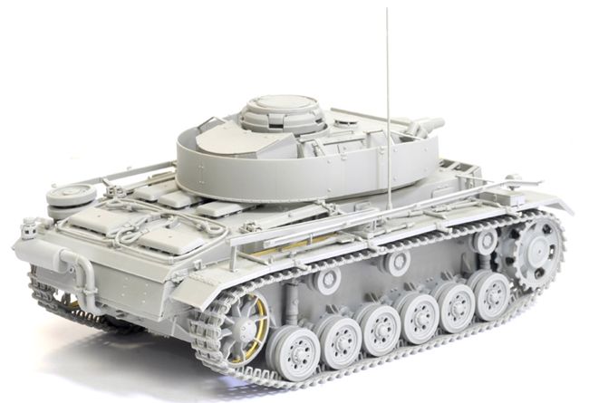 The PzKpfw III (Panzerkampfwagen III) was a German medium tank from the Second World War. The first prototypes of the vehicle were made in 1936, and serial production continued in the period 1937-1943, ending with the production of about 5,800 vehicles. The tank in the E version was powered by a single Maybach HL 120 TRM engine with a capacity of 300 HP. It was armed with one 37mm KwK 35/36 cannon and two 7.92mm MG 34 machine guns. placed in the tower. PzKpfw III was the "workhorse" of the German armored forces during World War II and one of the most intensively developed and modernized Wehrmacht tanks. Its serial production started in 1936, and many variants of this tank were created in its course. Chronologically, the first version was the A version, armed with a 37mm gun and a 230hp engine. However, already in December 1938, the E version was created, which was the first version produced in large series. It had a new, significantly more powerful engine, a completely new suspension and stronger armor in the front part of the turret and hull. Later (from December 1940) it was also armed with a more powerful 50mm cannon. In March 1940, the G version began to be produced, in which the rear hull and turret armor was reinforced. Soon after, in October 1940, the production of the H version started, which from the very beginning was armed with the 50mm KwK 38 L / 42 gun and had reinforced frontal armor. One of the most produced was the J version, which had armor up to 50 mm thick (later reinforced with aplique plates), and after the experience gained from the clashes with the T-34 and KW-1 vehicles - it was intensively rearmed for the KwK 39 L / 60 cannon. cal. 50 mm. The last development version was the N version, which was to be a support tank for armored grenadiers and was armed with a 75mm KwK 37 L / 24 short-barreled cannon. Numerous other vehicles were built on the chassis of the PzKpfw III, such as the StuG III assault gun. PzKpfw III tanks were used on almost all fronts of World War II - from the September campaign in 1939, through the campaign in France in 1940, operations Barbarossa and Typhoon in 1941, the Battle of Kursk in 1943, to the last operations of the German army against The USSR and the Western Allies in 1944-1945.
