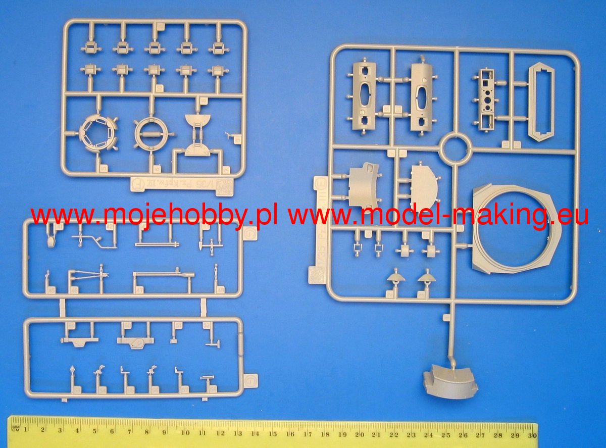 Набор комплектуется пластиковыми наборными траками Magic Track, декаль на 8 вариантов окраски и маркировки, 2 варианта постройки модели (с коротким и длинным стволом).